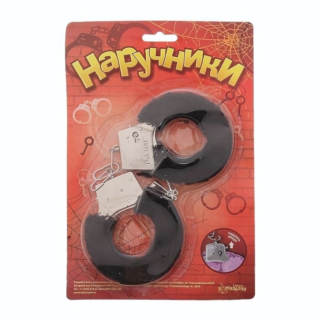 Наручники эротические с мягкой меховой отделкой, металл, цвет черный, коллекция «Страна Карнавалия»