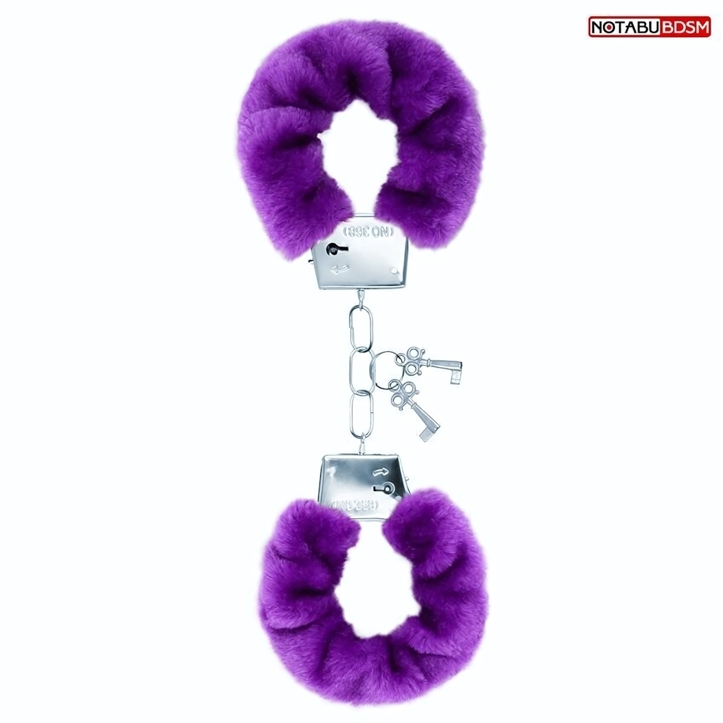 Наручники с фиолетовым мехом, металлические, цепочка 15см, ключи в комплекте
