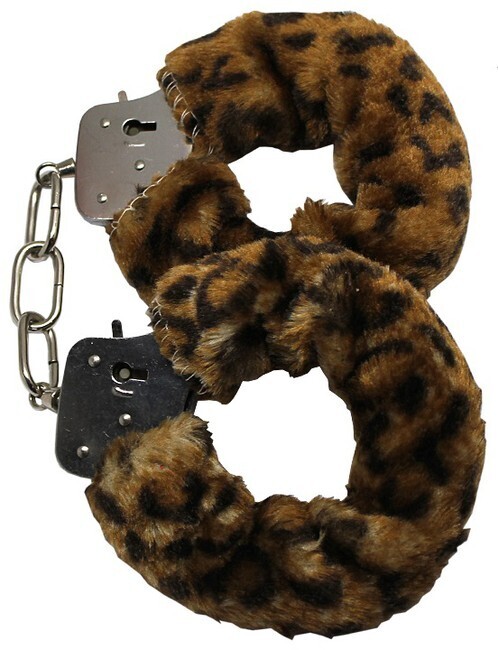 Наручники металлические с мехом 'под леопарда', комфортные, размер универсальный