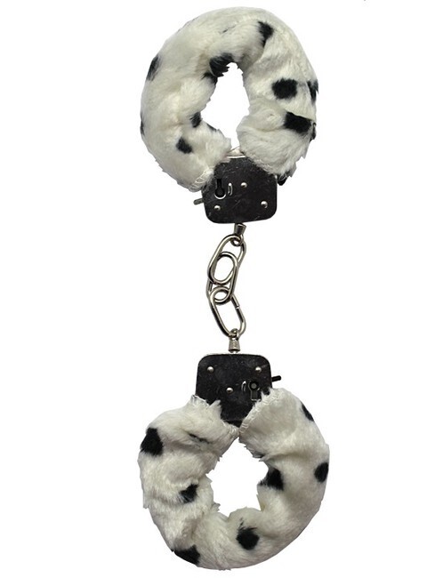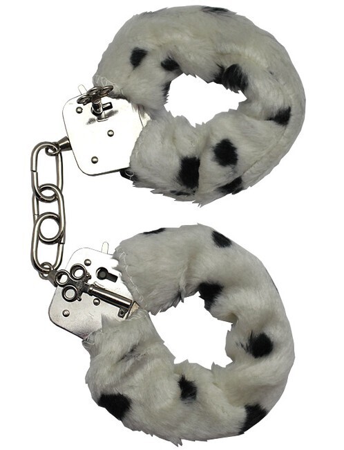 Наручники с меховой отделкой «Eroticon», металл, бело-черный цвет, ключи в комплекте
