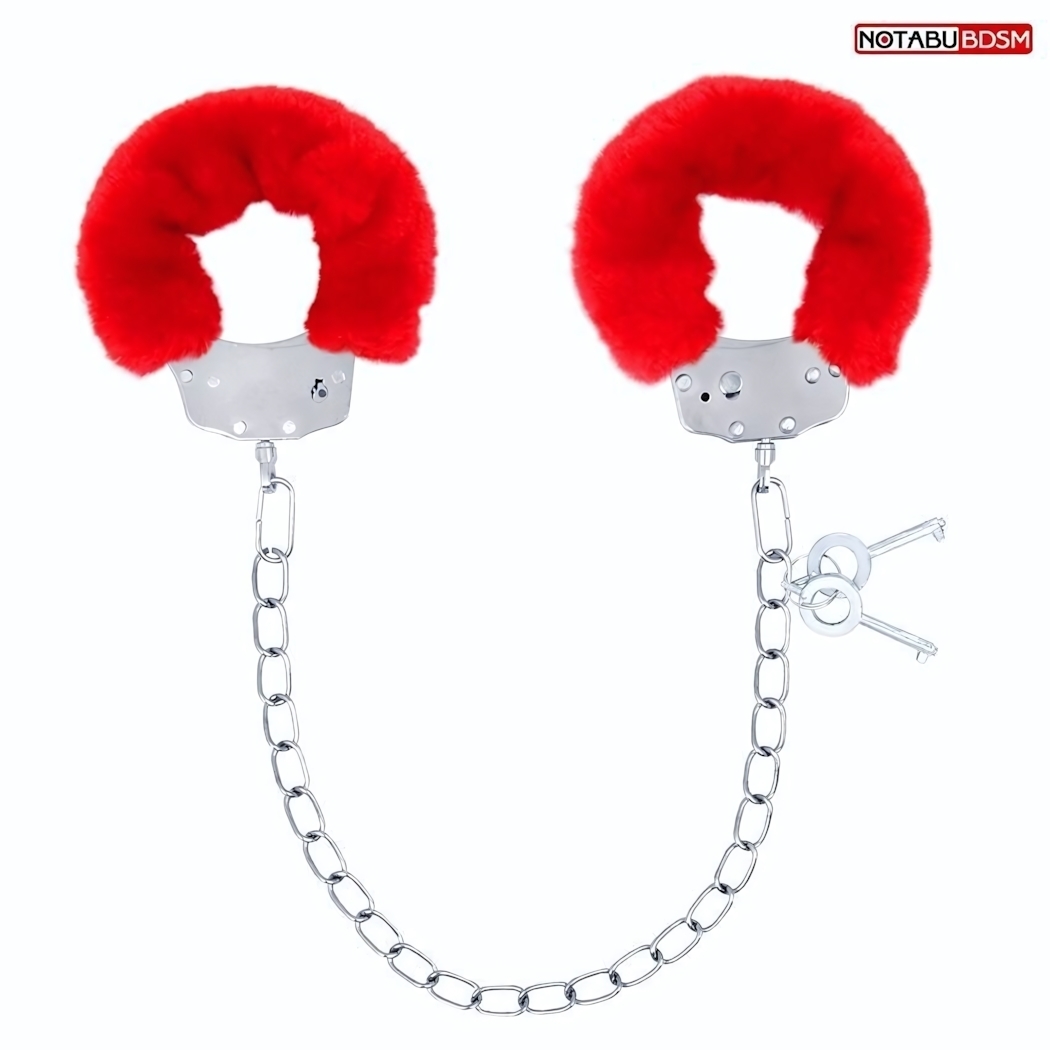 Наручники для лодыжек с меховой опушкой, металл, красный, комплект с ключами, Notabu BDSM