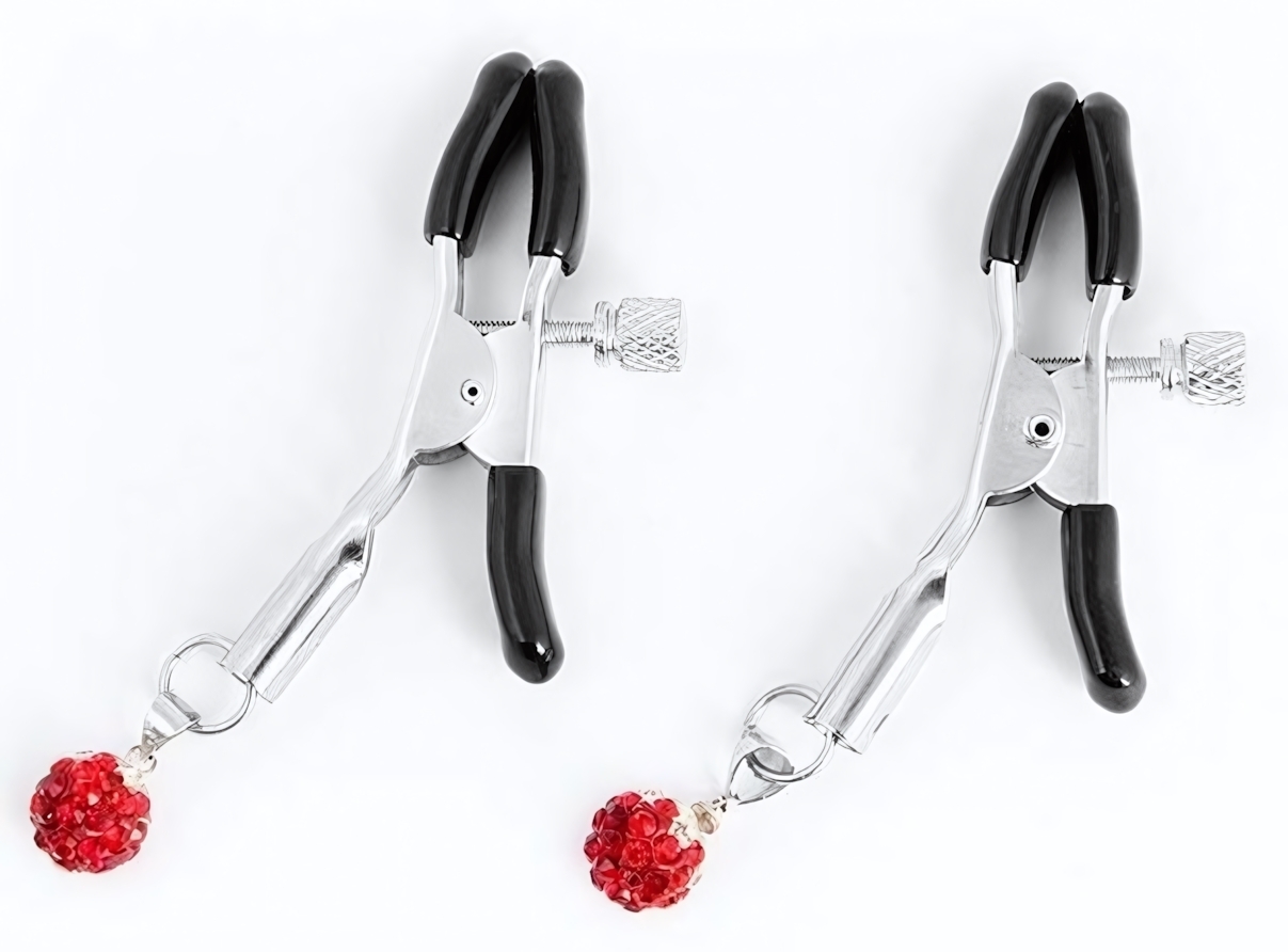 Почему стоит выбрать именно эти зажимы? Во-первых, они выполнены из качественного металла, что гарантирует долговечность и надежность. Во-вторых, их стильный дизайн с красными шариками добавляет элемент игривости и эстетики. Эти зажимы станут отличным дополнением к вашему арсеналу интимных аксессуаров.