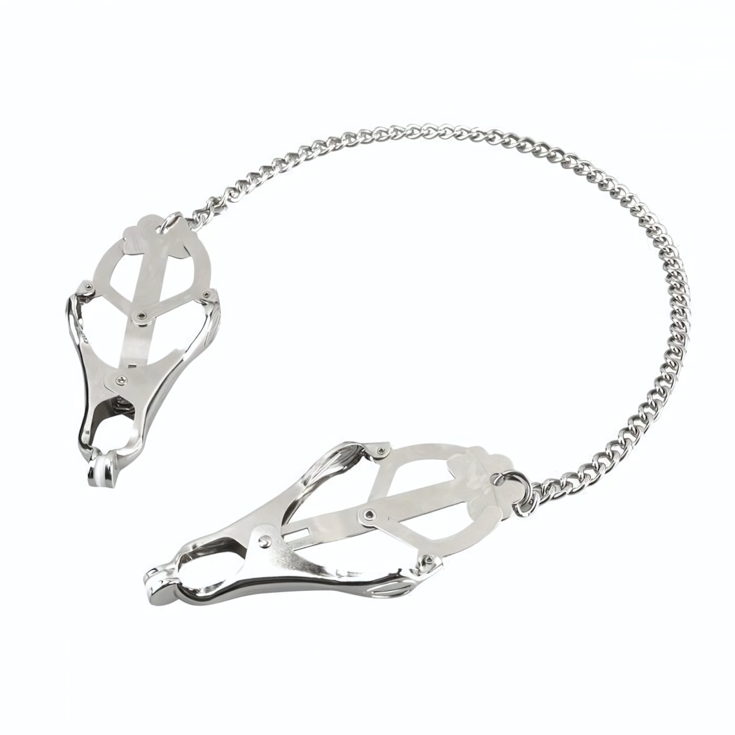 Зажимы легко использовать и подходят как для новичков, так и для опытных пользователей. Просто зажмите их на сосках, и они будут надежно держаться благодаря пружинному механизму. Цепочка, соединяющая зажимы, добавляет элемент игры и может использоваться для различных сценариев в BDSM.