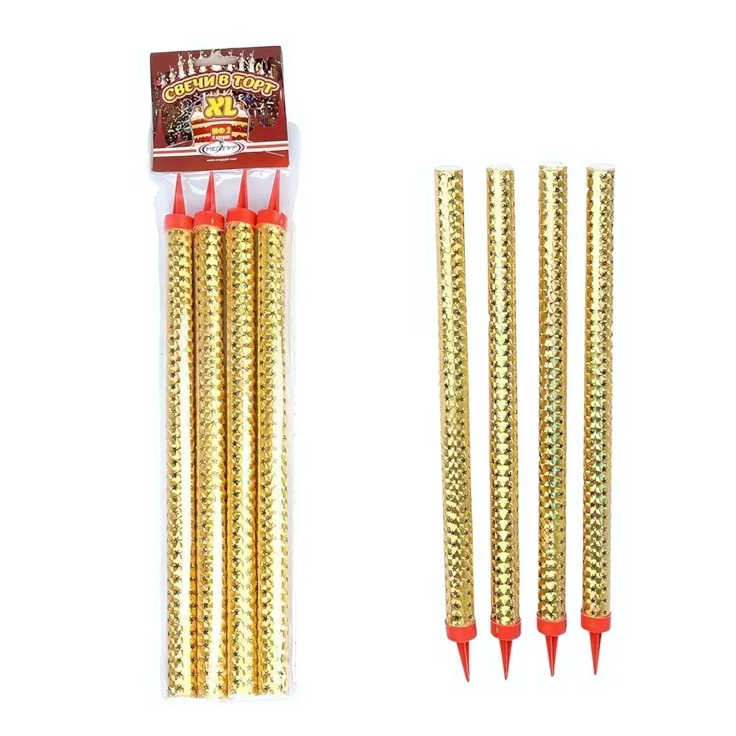В комплект входят 4 длинные свечи длиной 15 см, что позволяет использовать их на тортах различной высоты. Упаковка с прозрачным пластиком позволяет увидеть свечи и их блестящий дизайн. Эти свечи не только украсят ваш торт, но и создадут атмосферу праздника, которую запомнят все гости.
