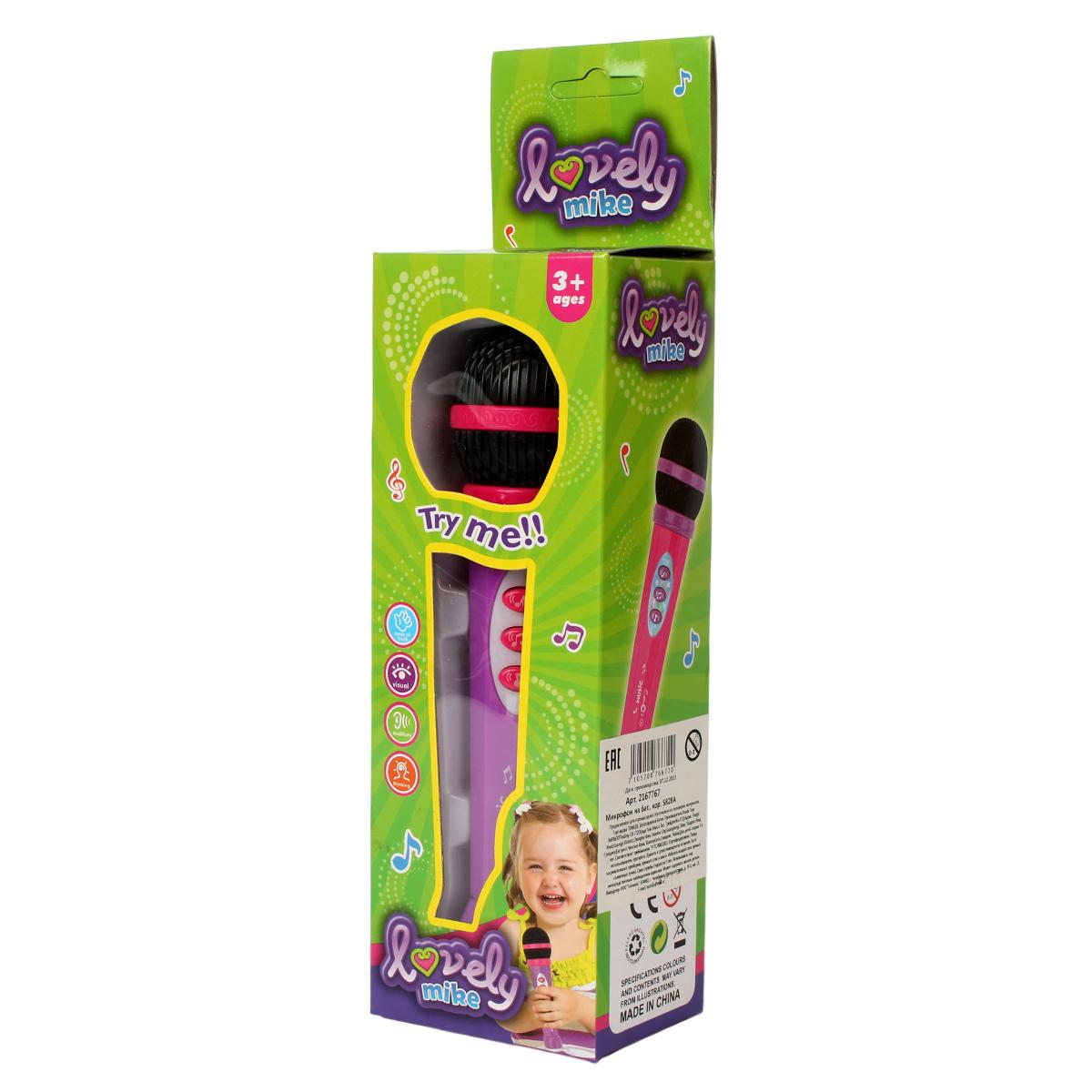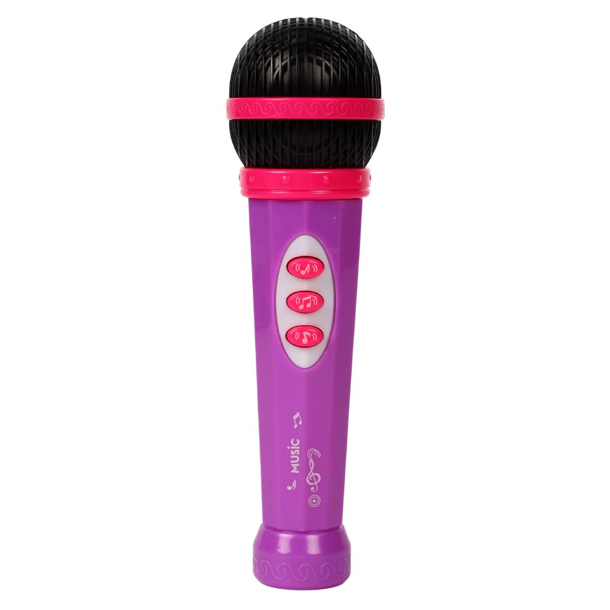 Микрофон детский музыкальный на батарейках, фиолетово-розовый, 18.5 см, пластик