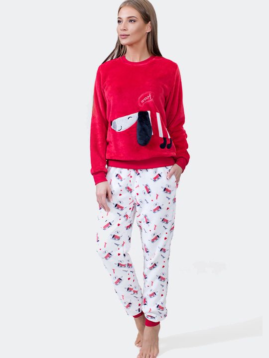 Пижама домашняя с таксами, комплект из микрофибры, размер XL, цвет красный с белым, 100% полиэстер