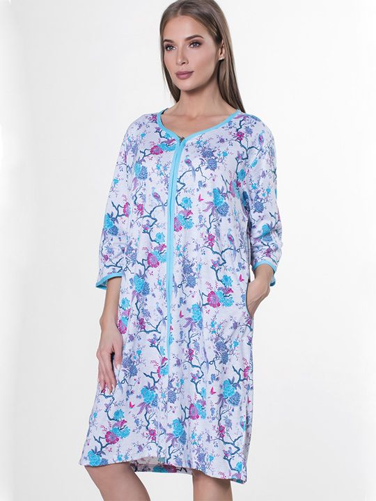 - Комфортный крой: Короткая длина и рукав 3/4 обеспечивают свободу движений, не сковывая при домашних делах.
