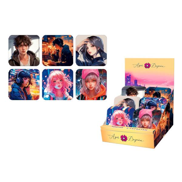 Художественные работы сочетают графику с элементами анимации: прически персонажей, стилизованная одежда и аксессуары создают запоминающийся визуальный образ. Открытки выполнены на плотном картоне, что гарантирует сохранность при транспортировке.