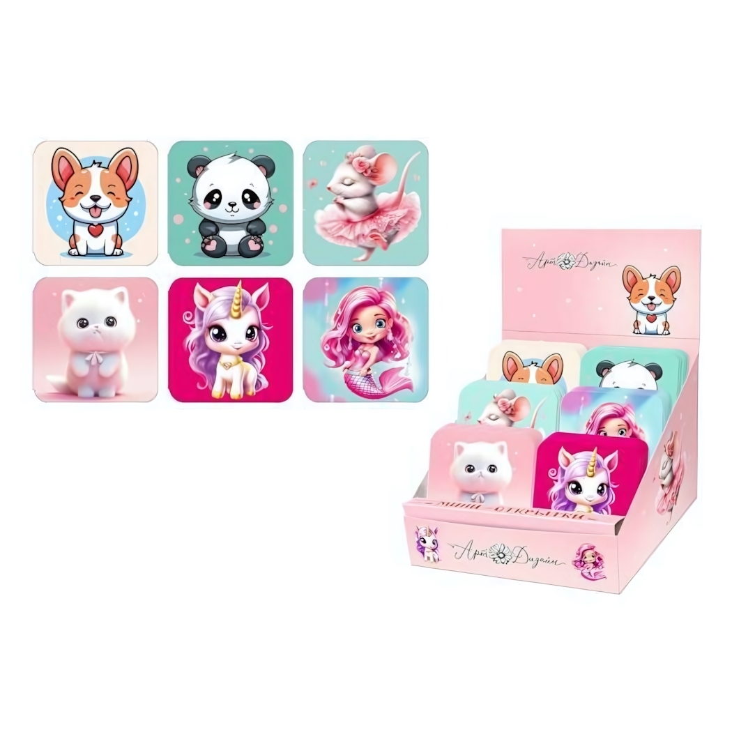 Карточки выполнены из качественного материала, устойчивого к истиранию. Их удобно брать в руки, а яркие цвета привлекают внимание даже самых маленьких исследователей. В наборе представлены милые корги, панды, мышки, котята, единороги и русалки — настоящий микс доброты и радости.