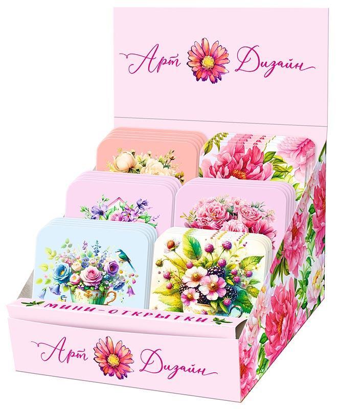 Яркая мини-открытка с цветочными композициями станет идеальным дополнением к подарку или самостоятельным знаком внимания. Качественная печать на плотном картоне гарантирует сохранность рисунка и тактильное удовольствие при вручении.