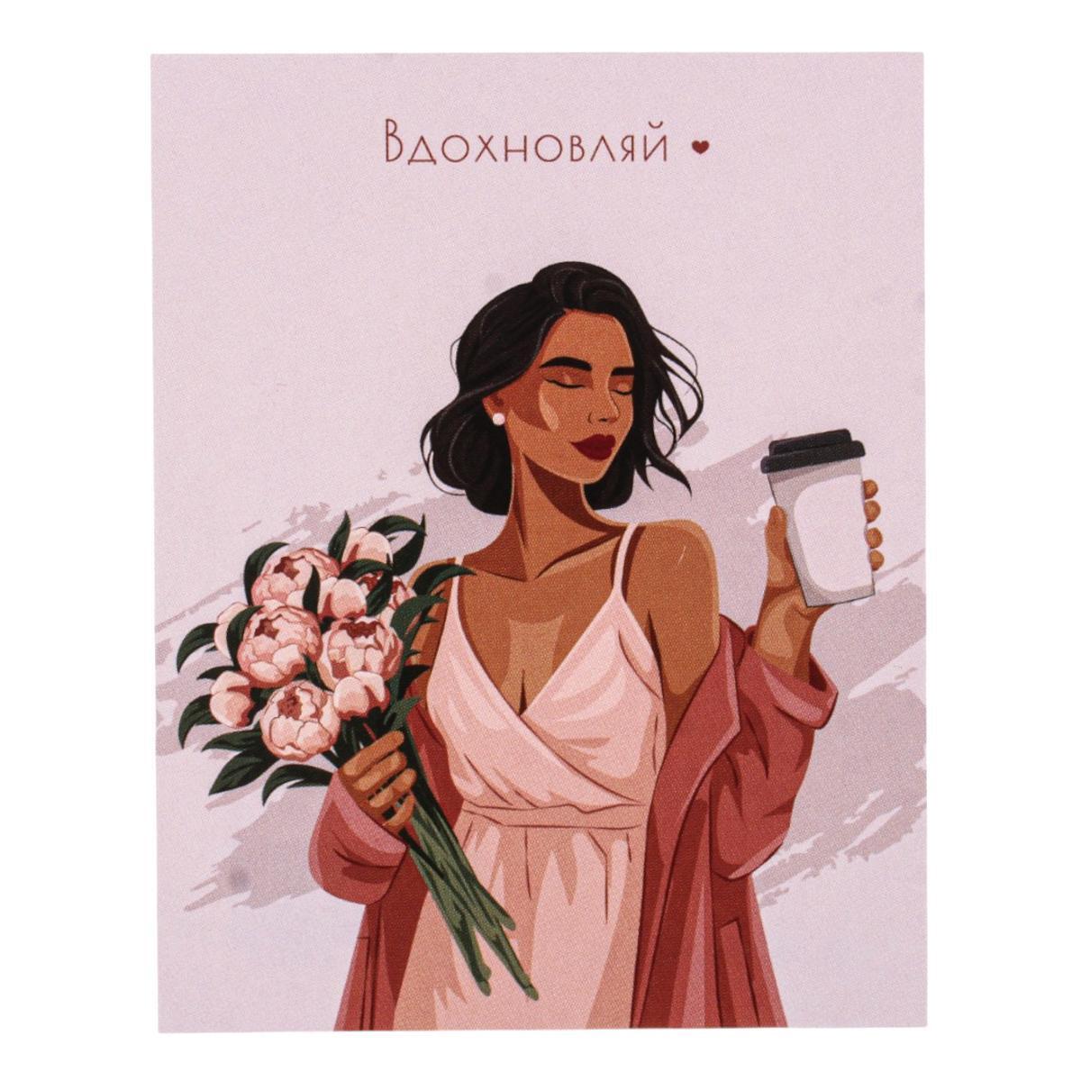 Эта миниатюрная открытка станет трогательным акцентом любого подарка. Плотная дизайнерская бумага 350 г/м² обеспечивает приятную тактильную текстуру и долговечность, а нежное оформление с иллюстрацией женщины с букетом на светло-розовом фоне передает атмосферу тепла и дружелюбия. Подпись «Вдохновляй» добавляет особое послание, которое оценит получатель.