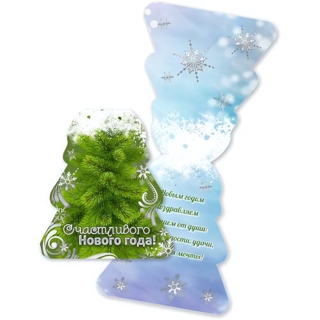 Создайте теплую атмосферу праздника с этой очаровательной мини-открыткой "Счастливого Нового года!". Яркий дизайн в форме елочки, выполненный в традиционных новогодних цветах, подарит радость и улыбку вашим близким и друзьям. Эта маленькая, но полная тепла открытка станет прекрасным дополнением к вашему подарку или просто приятным знаком внимания.