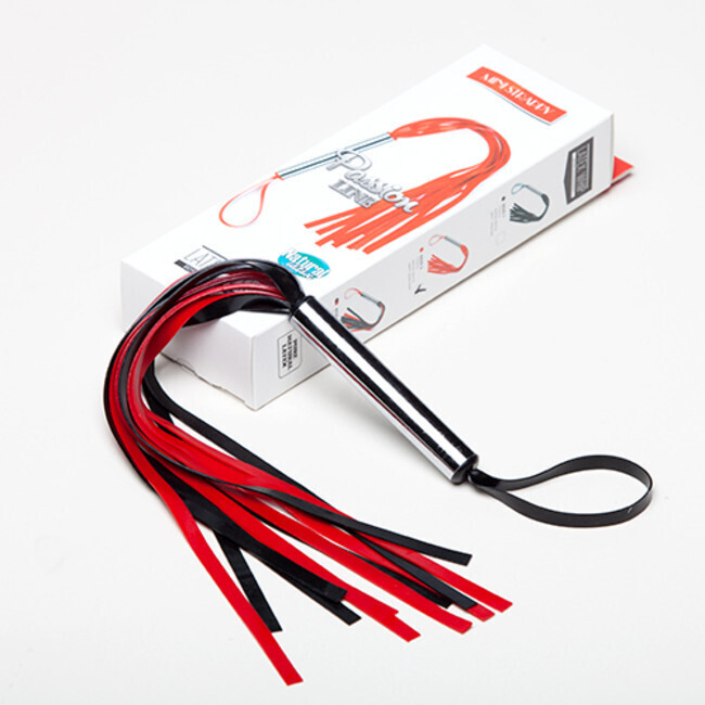 Мини-плеть «Passion Line» с латексными лентами 27 см, эргономичная ручка, чёрно-красная
