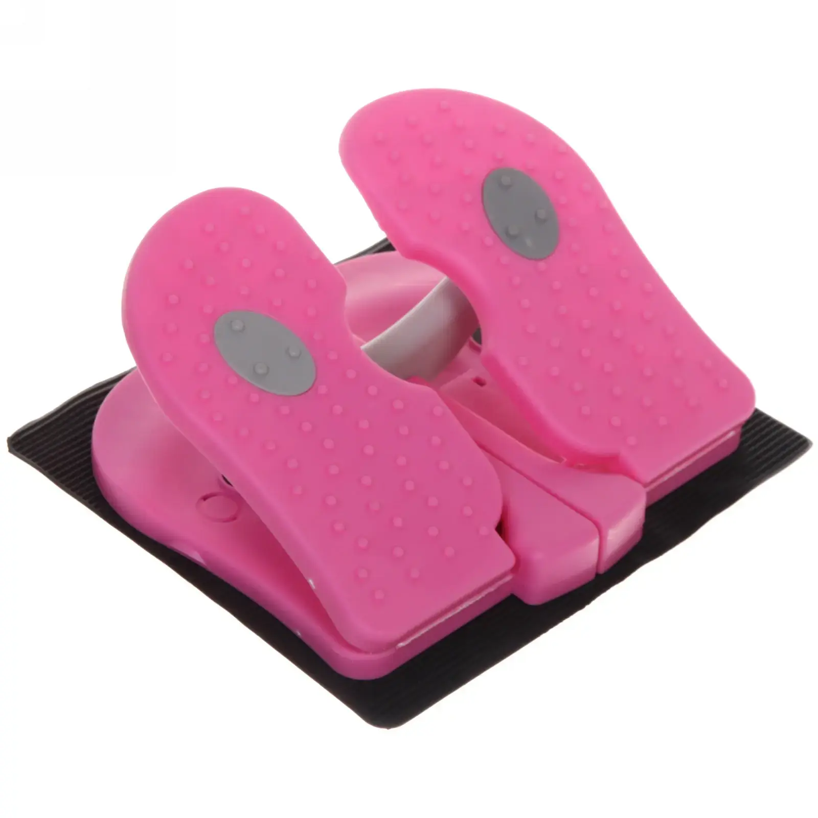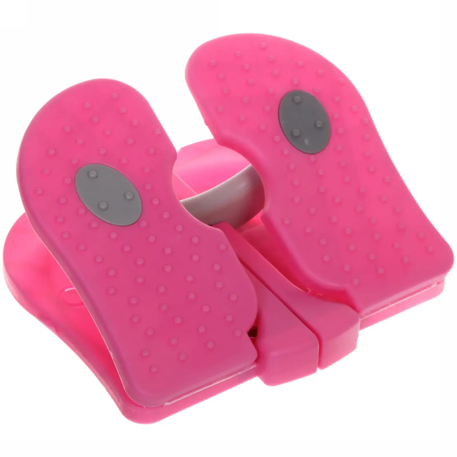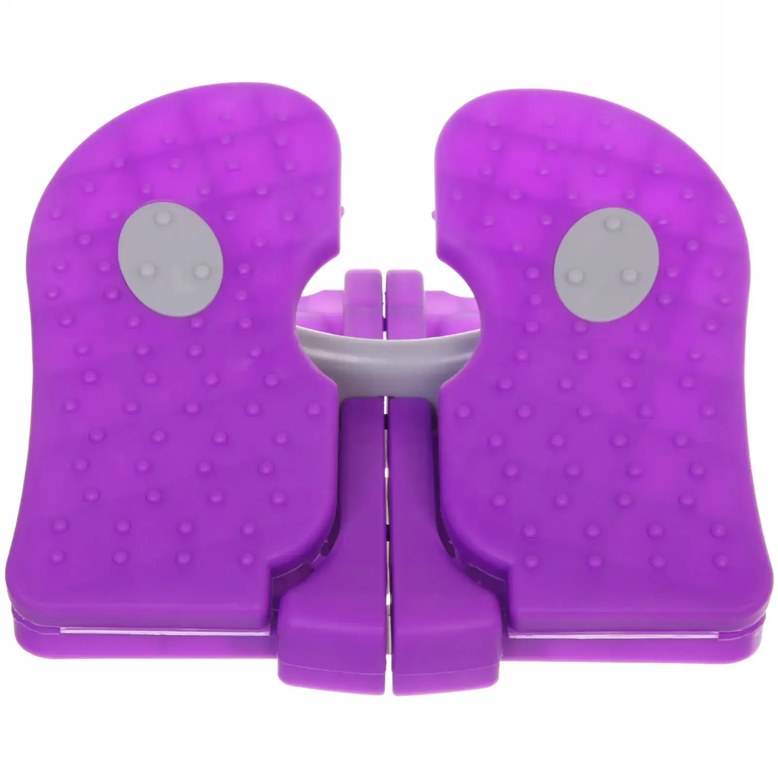 Степпер состоит из двух платформ овальной формы с текстурированной поверхностью. Центральная часть выполнена из светлого пластика, обеспечивающего легкое складывание устройства. Размеры каждой платформы позволяют комфортно разместить стопу любого размера. Доступные цвета: розовый и фиолетовый – выберите тот, который вам больше по душе!
