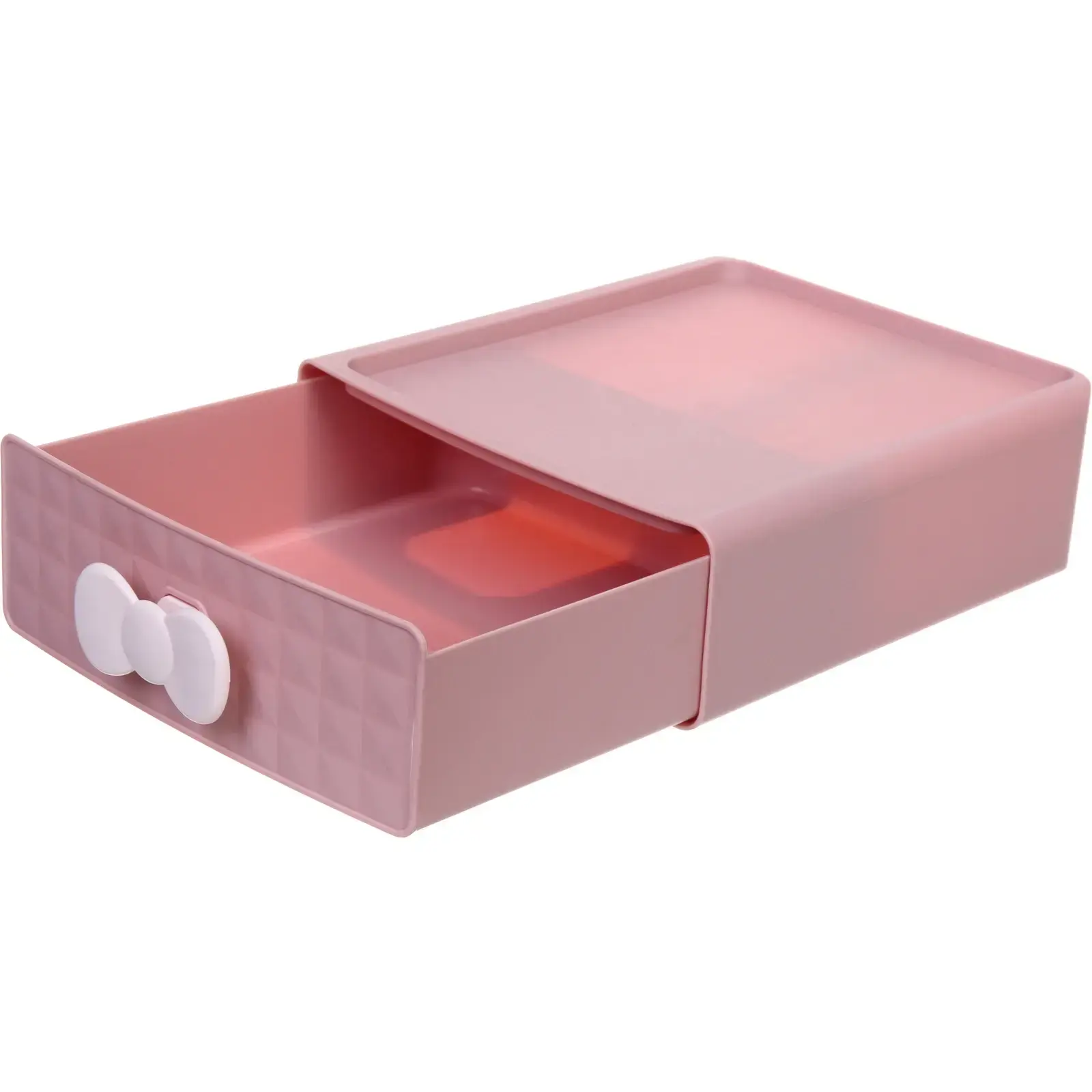 Мини-ящик «ЛЕНАР» оснащен выдвижным ящиком, что делает его использование простым и удобным. Прозрачная верхняя часть позволяет быстро находить нужные вещи, а текстурированная передняя панель с белой ручкой в форме бантика добавляет стильный акцент. Ящик подходит для использования как в офисе, так и дома, помогая поддерживать порядок и организованность.