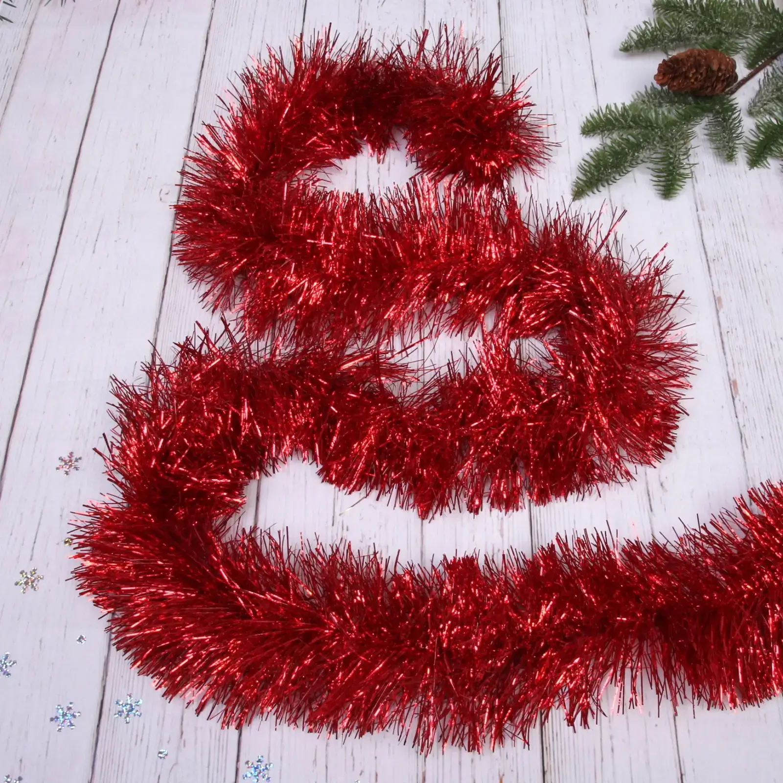 Погружайтесь в атмосферу праздника с яркой красной мишурой