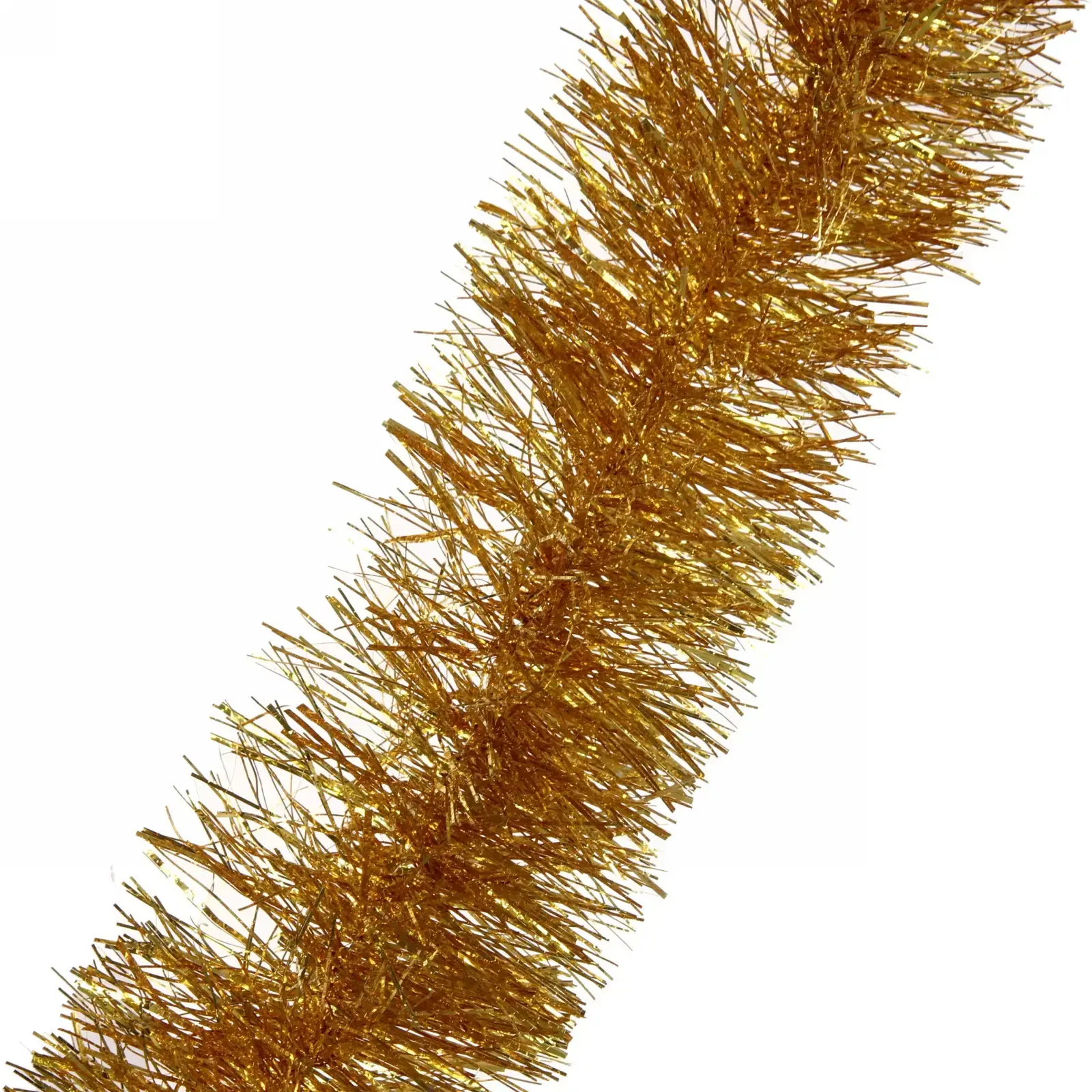 Мишура выполнена из синтетических волокон, что обеспечивает ей легкость и объемность. Ее золотистый цвет прекрасно сочетается с другими новогодними украшениями, создавая гармоничный и стильный декор. Длина мишуры составляет 2 метра, а ширина — 13 см, что позволяет использовать ее в самых различных вариантах оформления.