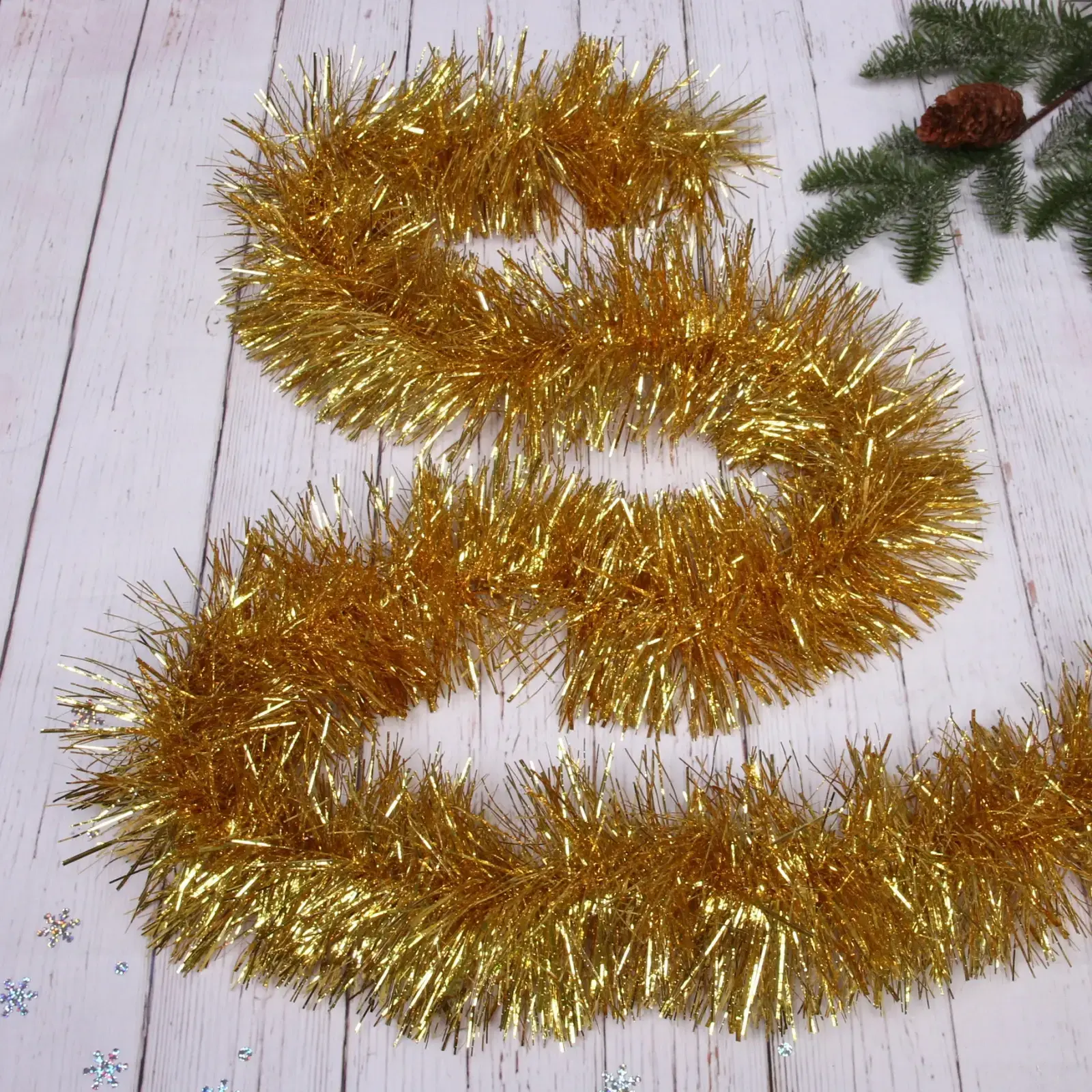 Эта великолепная мишура длиной 2 метра и шириной 13 см станет идеальным украшением для вашего дома в новогодние праздники. Яркий золотистый цвет и блестящая текстура создают эффект волшебного сияния, наполняя пространство теплом и радостью. Используйте ее для декорирования елки, окон, дверей или стен, чтобы создать незабываемую атмосферу праздника.