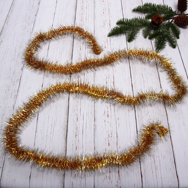 Мишура длиной 2 метра и шириной 7 см в золотом и белом цветах — это идеальное украшение для вашего дома в новогодние праздники. Она добавит волшебства и уюта в любое пространство, создавая атмосферу тепла и радости. Используйте её для декорирования ёлки, стен, окон или праздничного стола, чтобы сделать ваш праздник незабываемым.