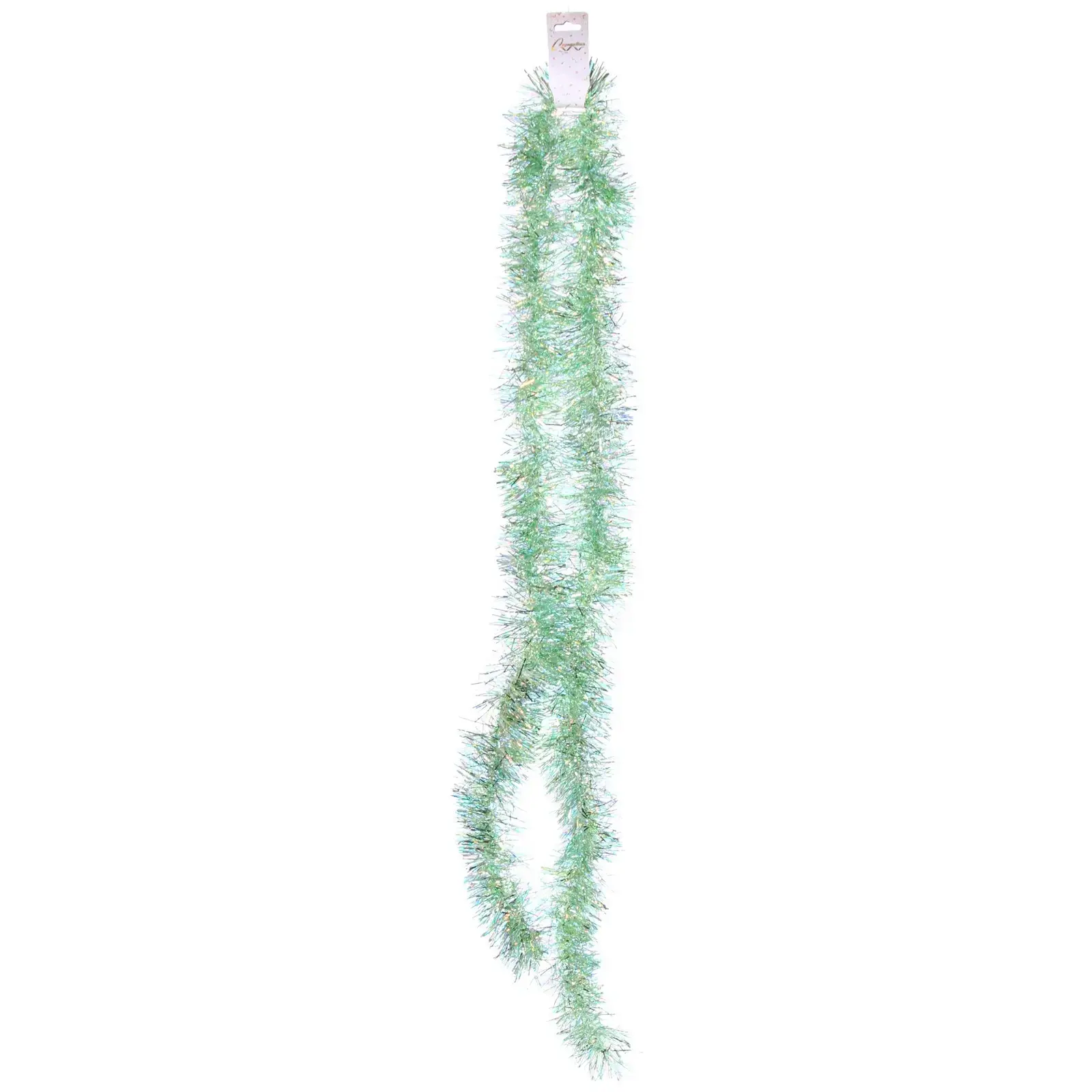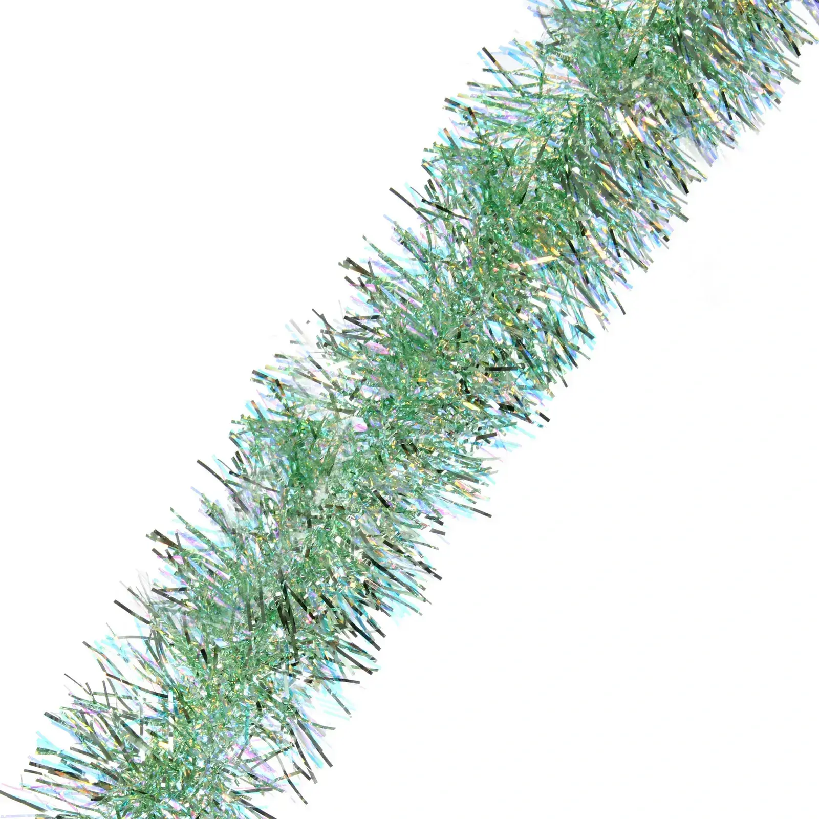 Мишура имеет насыщенный зелёный цвет с блестящими фрагментами, которые создают эффект мерцания и привлекают внимание. Благодаря своей структуре из тонких, длинных полосок, она легко принимает нужную форму, что позволяет вам проявить креативность в оформлении. Подходит для использования как в домашних условиях, так и в общественных местах, таких как кафе и магазины.