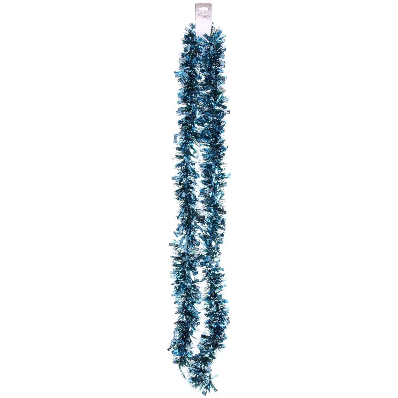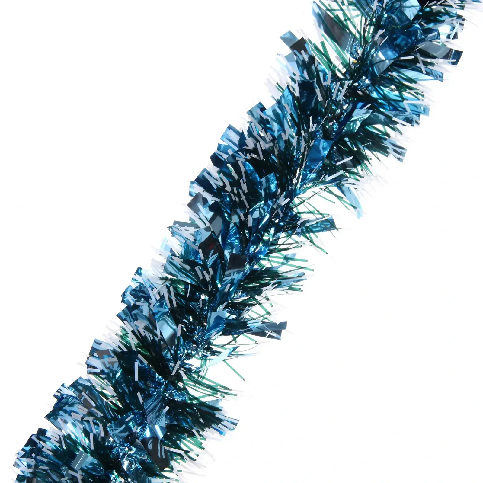 Мишура выполнена из высококачественного синтетического материала, который не теряет цвет и блеск со временем. Длина 2 метра и ширина 9 см позволяют использовать ее в различных вариантах декора. Сочетание голубого цвета с блестящими элементами делает ее универсальным украшением для любого стиля интерьера.