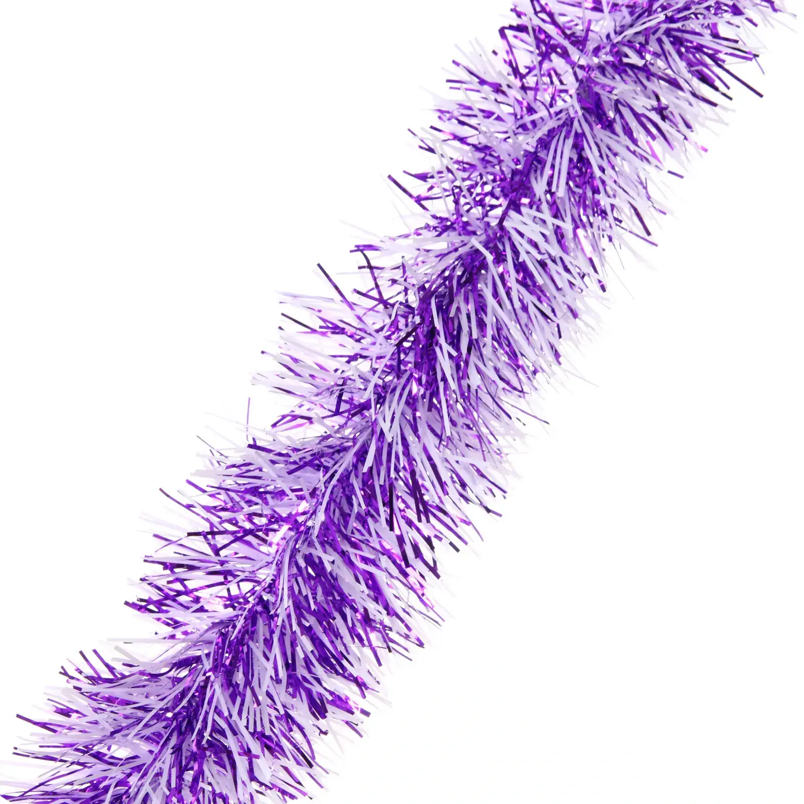 Мишура изготовлена из качественного ПВХ, что обеспечивает её долговечность и устойчивость к внешним воздействиям. Блестящая текстура придаёт ей эффектный вид, а фиолетовый цвет добавляет яркости и оригинальности. Вы можете комбинировать её с другими украшениями, создавая уникальные композиции.