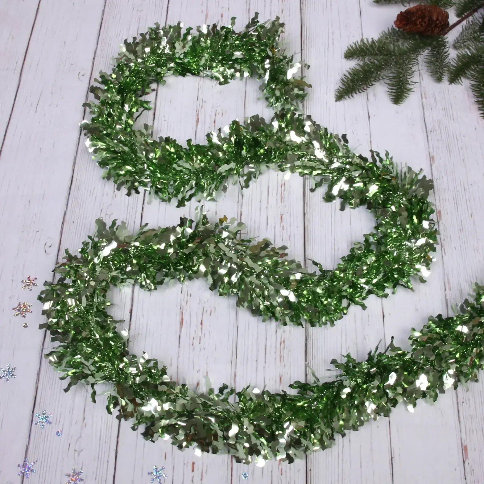 Мишура выполнена из высококачественного материала, который не теряет своего блеска со временем. Изумрудный цвет отлично сочетается с другими новогодними украшениями, создавая гармоничный и стильный вид. Длина 2 метра и ширина 9 см делают ее универсальной для различных стилей оформления.