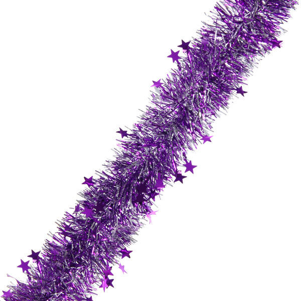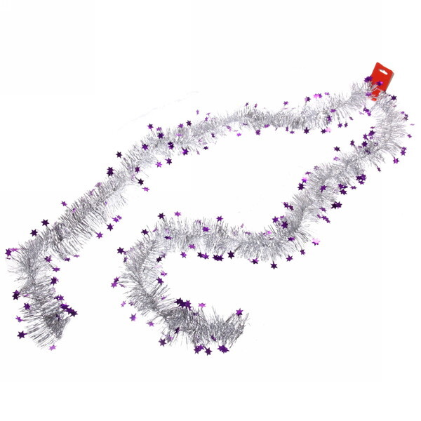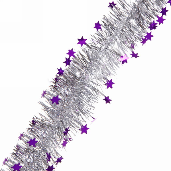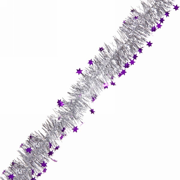 Мишура длиной 2 метра и шириной 6 см — это идеальное украшение для вашего дома в новогодние праздники. Она добавит атмосферу тепла и радости, создавая неповторимый уют. Сочетание серебристого цвета с фиолетовыми звёздочками придаст вашему интерьеру яркость и оригинальность.
