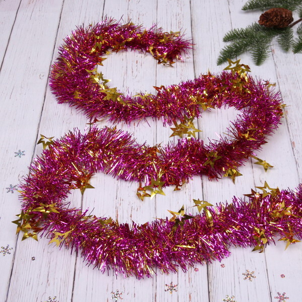 Мишура длиной 2 метра и шириной 8 см в розовом цвете с золотыми звёздами — это идеальное украшение для вашего дома в новогодние праздники. Она добавит яркие акценты и создаст атмосферу тепла и веселья, наполняя ваш дом волшебством. Используйте её для декорирования ёлки, стен или праздничного стола, чтобы сделать ваш праздник незабываемым.