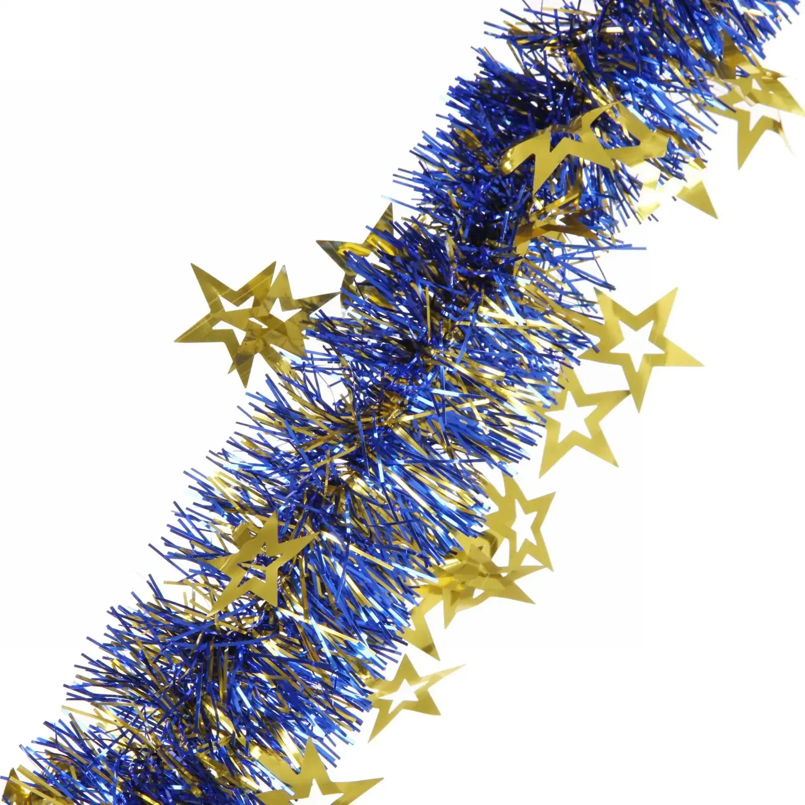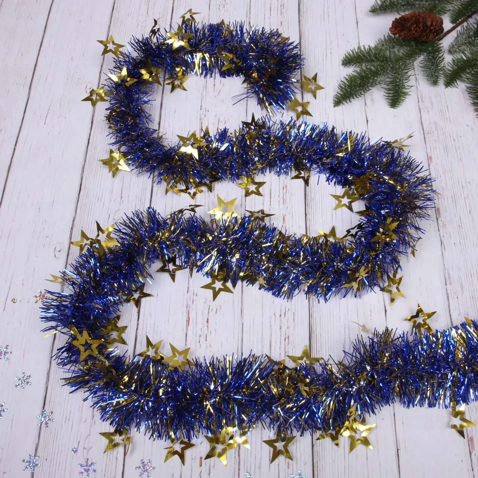 Мишура имеет длину 2 метра и ширину 8 см, что позволяет использовать её в различных декорациях. Синий цвет в сочетании с золотыми звездами делает её универсальным элементом для любого стиля оформления. Не упустите возможность сделать ваш праздник незабываемым с мишурой «Звезда»!