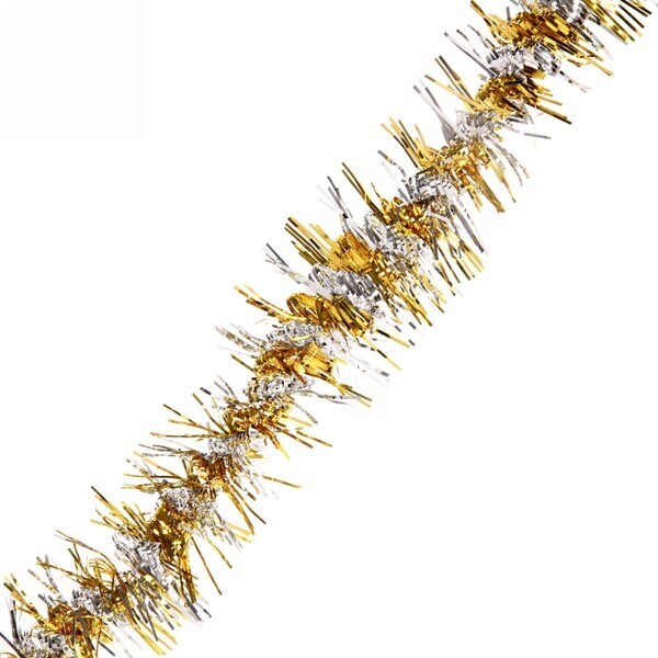 Размеры мишуры: длина 2 метра, ширина 9 см. Материал: ПВХ. Цвета: серебристый и золотистый. Это украшение станет отличным дополнением к вашему новогоднему декору и поможет создать незабываемую атмосферу праздника.