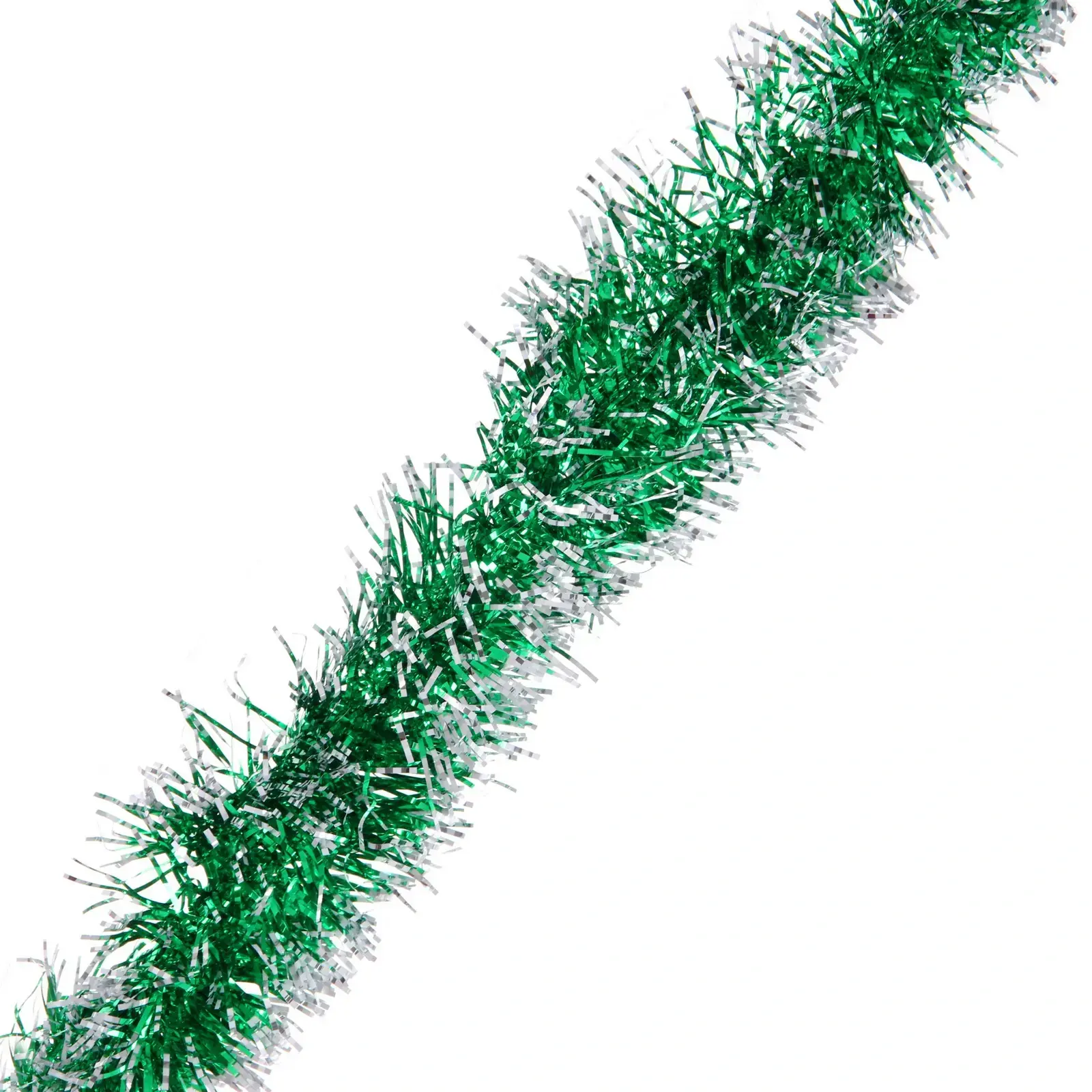 Благодаря сочетанию насыщенного зеленого цвета с мерцающими серебристыми элементами, гирлянда создает эффект праздничного сияния. Материал ПВХ обеспечивает долговечность и сохраняет презентабельный вид весь сезон.