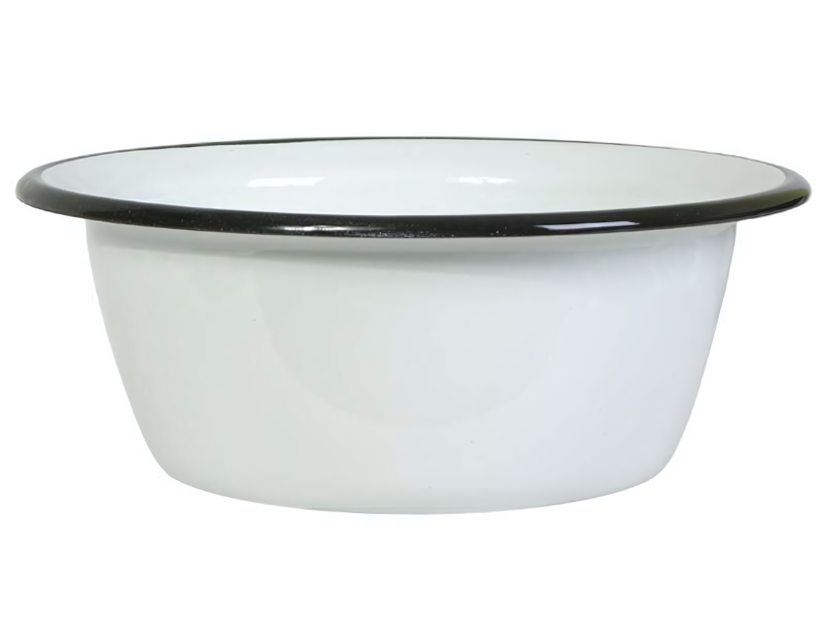 Миска изготовлена из высококачественной стали и покрыта эмалью, что придает ей надежность и эстетический внешний вид. Классическая бело-черная цветовая гамма делает ее гармоничным дополнением любой посуды и интерьера кухни.