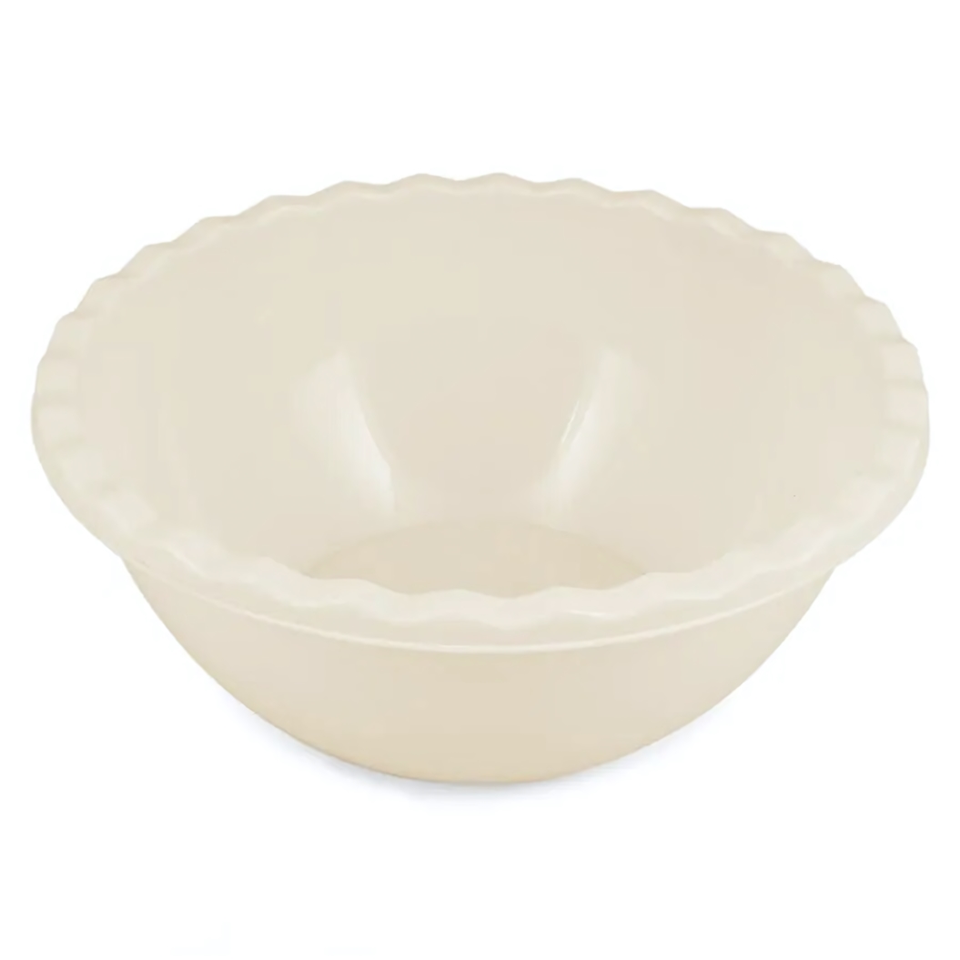 Миска пластиковая 2л, круглая с фигурным краем, цвет кремовый, для кухни и сервировки