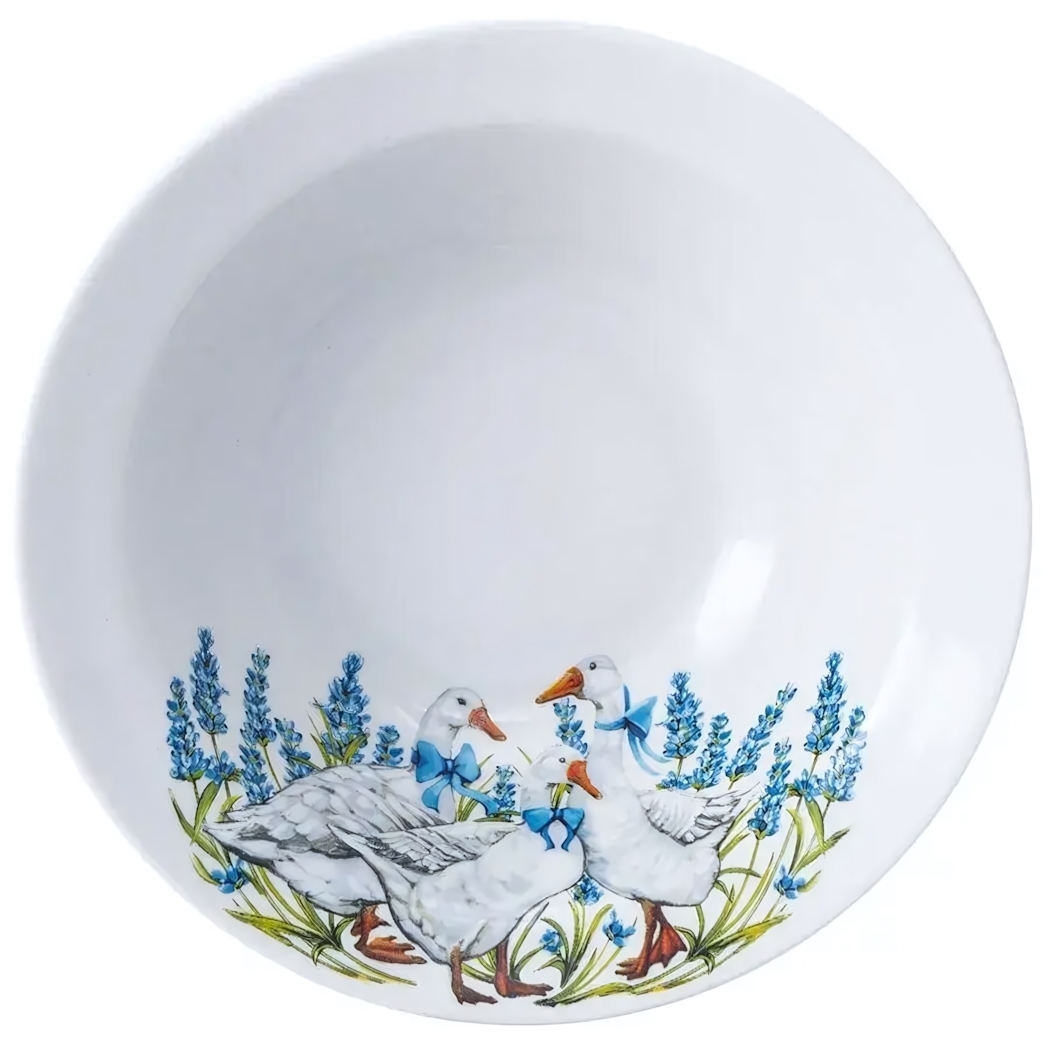 Фарфоровая миска с авторским рисунком гусей станет украшением вашего стола и подчеркнёт изысканный вкус. Ручная роспись с детальной проработкой перьев и цветочных композиций превращает обычную посуду в произведение искусства.