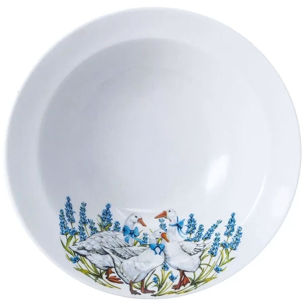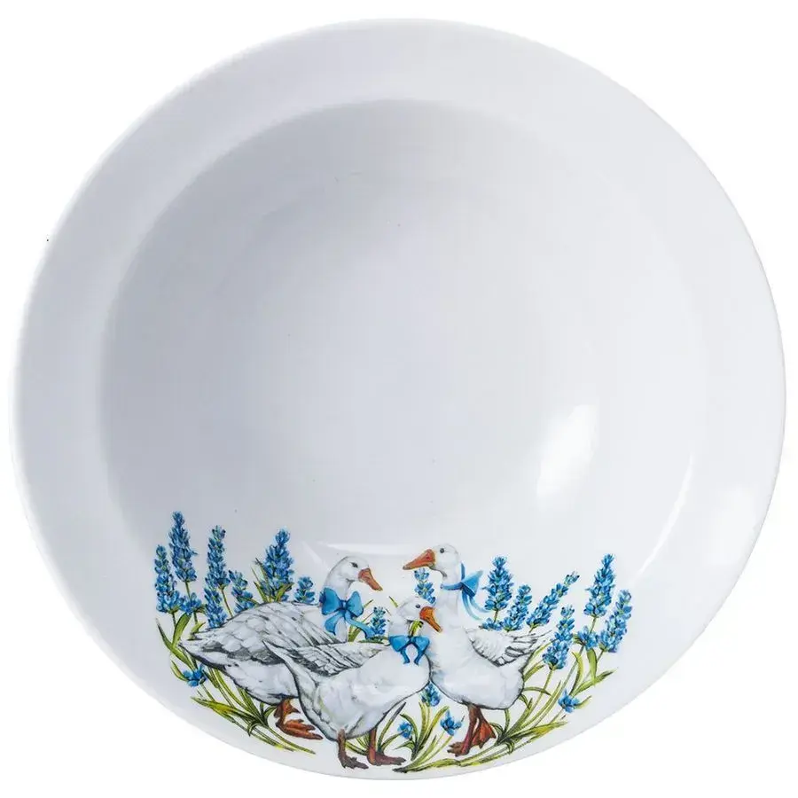 Миска фарфоровая 500 мл с декором «Гуси», белая с голубыми цветами, размер 4