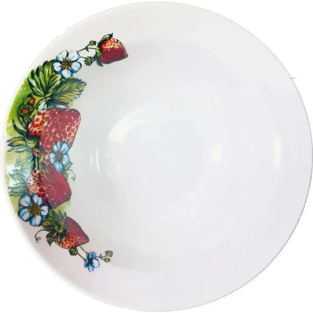 Фарфоровая миска с сочным рисунком клубники станет изюминкой сервировки. Объём 500 мл идеален для подачи супов, каш, десертов и свежих ягод. Изготовлена из экологичного фарфора с прочной глазурью, которая сохраняет первозданный вид после многократного использования.