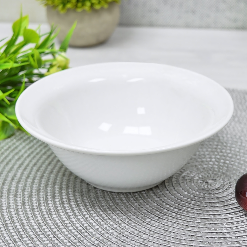 Погрузитесь в мир утонченного стиля и комфорта с нашей белой миской 'Идиллия' объемом 550 мл. Эта миска станет идеальным дополнением к вашему столу, придавая ему изысканный вид и создавая атмосферу уюта. Изготовленная из высококачественного фарфора, она не только красива, но и практична в использовании.