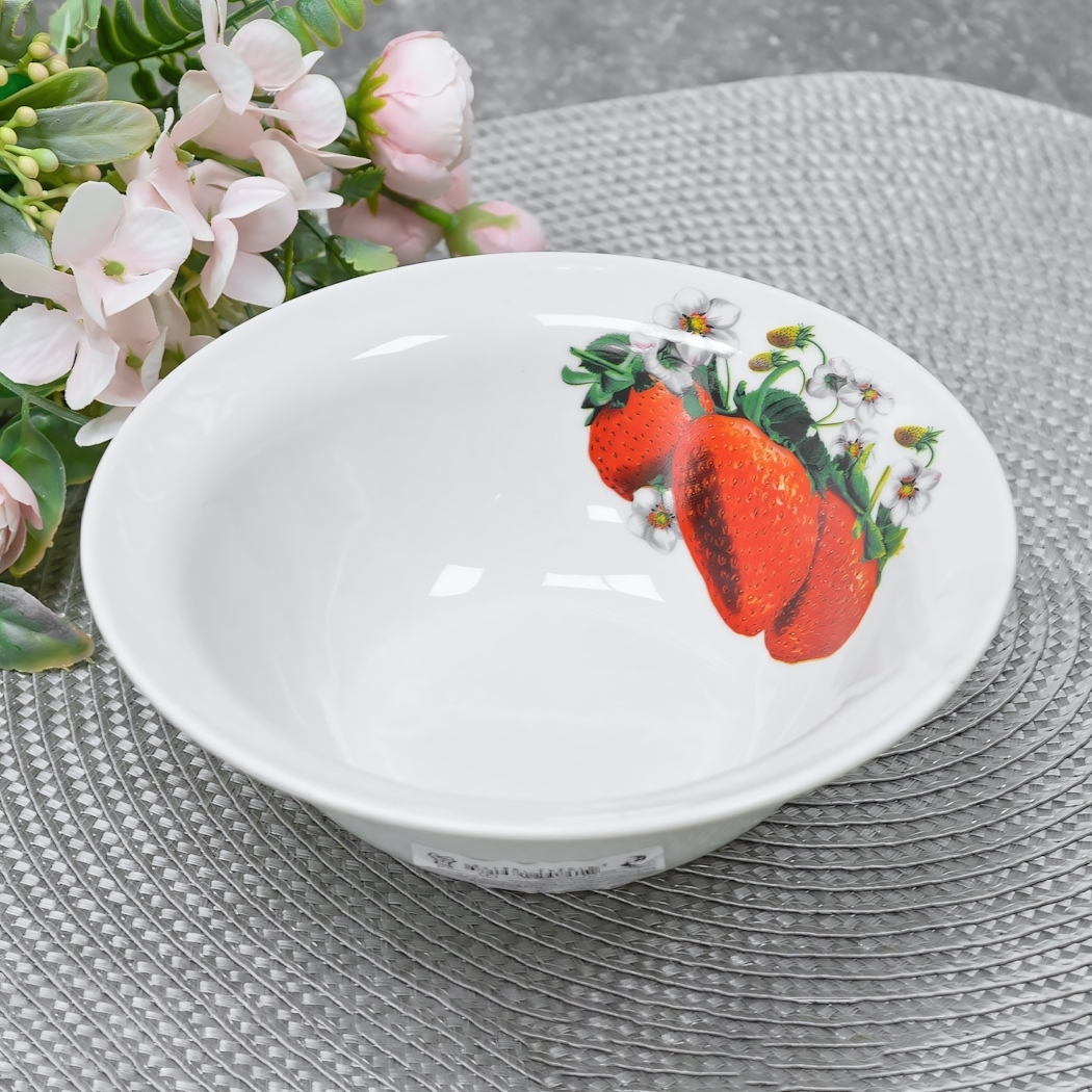 Миска фарфоровая 'Клубника', 550мл, коллекция Идиллия, белая с ягодами