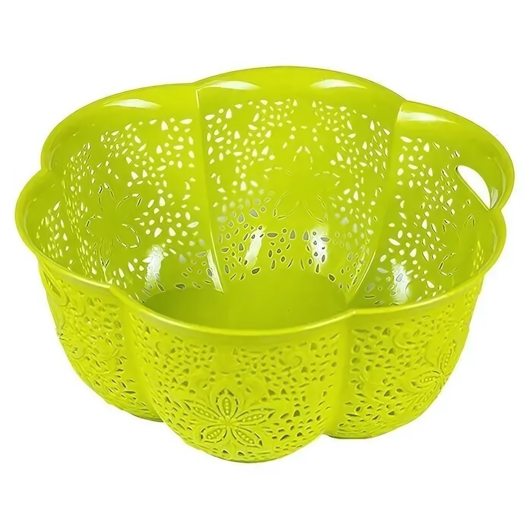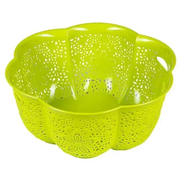 Практичная круглая миска с перфорацией сохраняет свежесть продуктов и эффектно вписывается в сервировку. Декоративные отверстия в виде цветочного узора обеспечивают циркуляцию воздуха, а эргономичные ручки упрощают переноску.