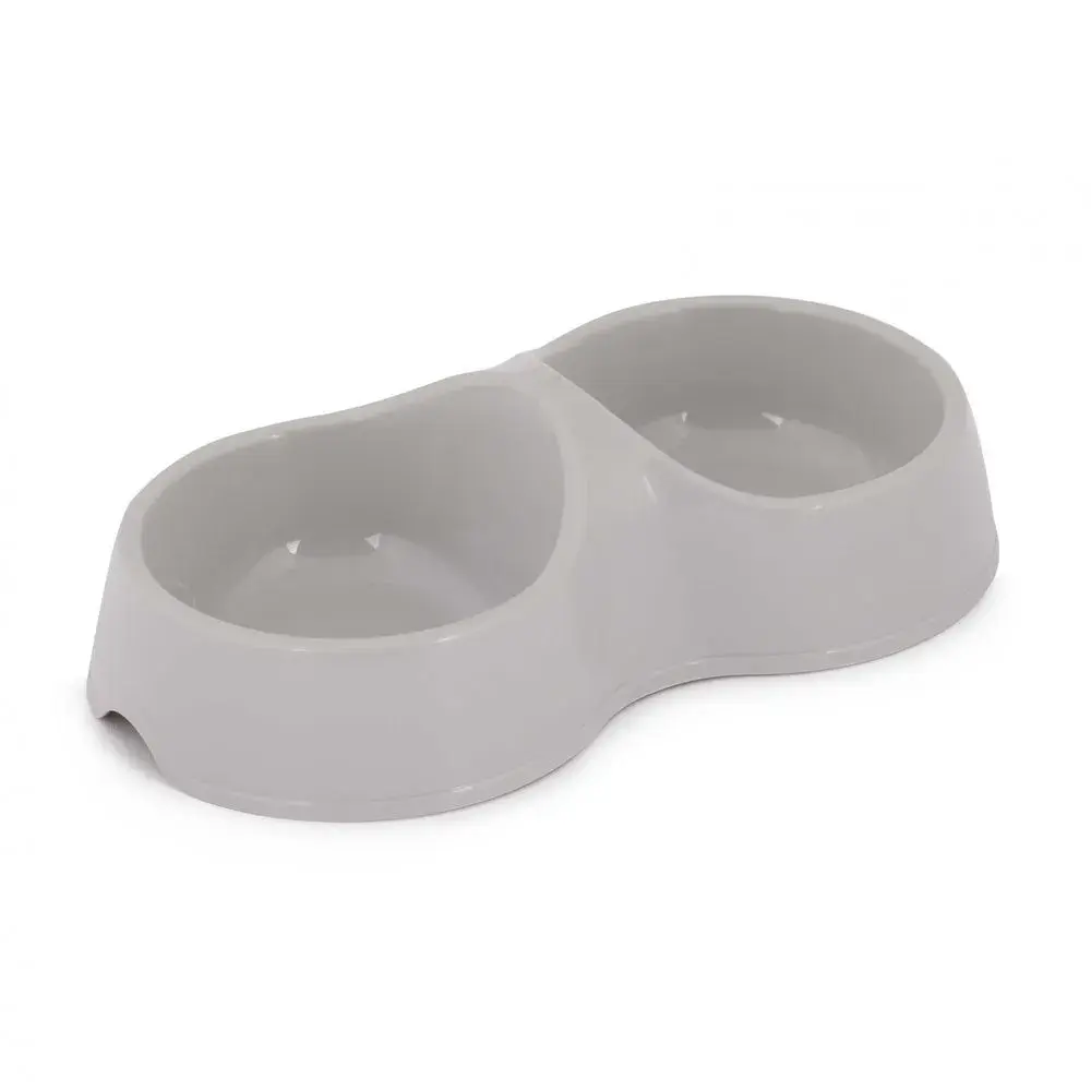 Миска для кошек двойная 0,2л, пластик, серый цвет, комплект 34 шт