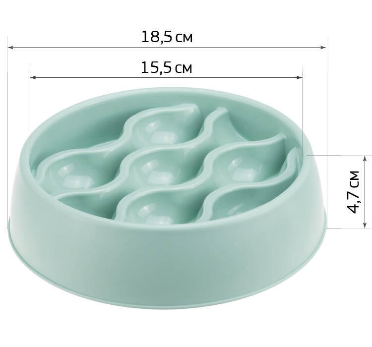Миска для медленного кормления "ВОЛНА М1805" помогает решить проблему быстрого поглощения пищи, которая часто приводит к проблемам с пищеварением. Специальная форма с лабиринтом в виде волн замедляет процесс еды, что способствует лучшему усвоению пищи и предотвращает переедание.