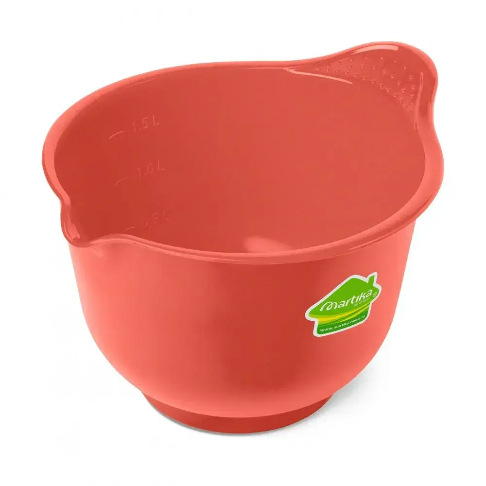 Миска отлично подойдет для домашнего использования, а ее эргономичная форма с выступающим краем и носиком для слива обеспечивает комфорт при использовании. Прочный материал устойчив к механическим повреждениям и прост в уходе, а яркий красный цвет легко впишется в любой интерьер кухни.