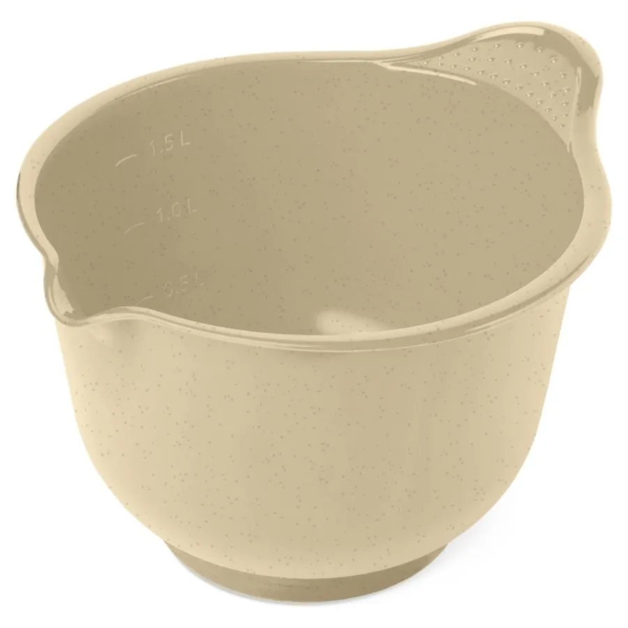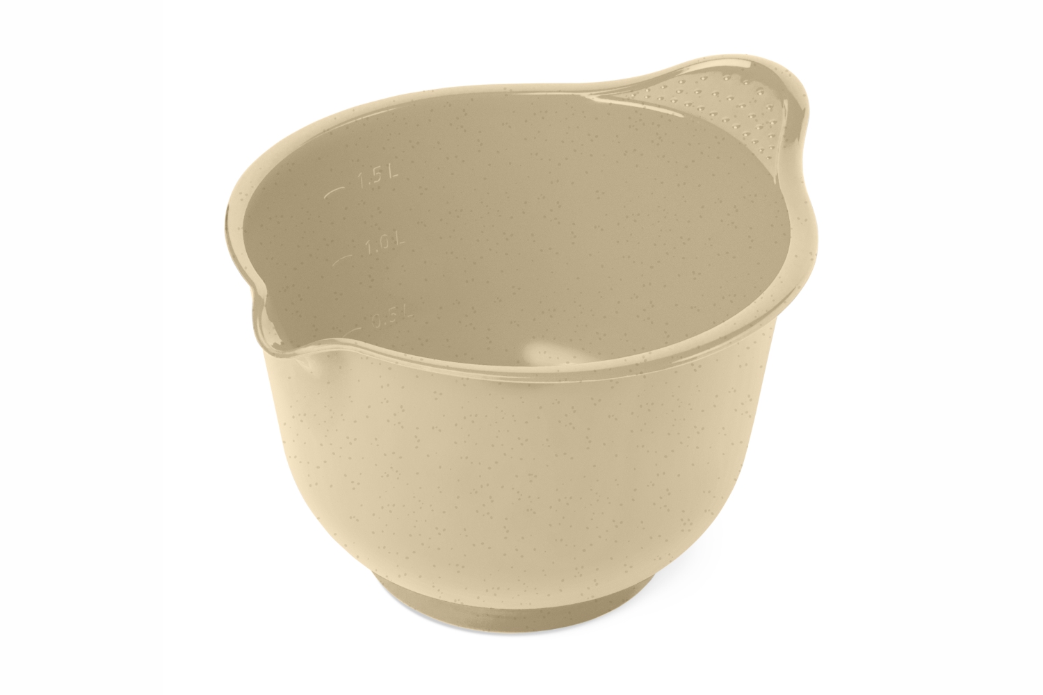 Миска выполнена в приятном песочном бежевом цвете с мелкими тёмными вкраплениями, который гармонично впишется в интерьер любой кухни. Округлая форма с расширенным верхним краем обеспечивает удобный доступ ко всем ингредиентам и лёгкое мытьё. Изделие предназначено для бытового использования и подходит для работы с большинством ручных и стационарных миксеров.