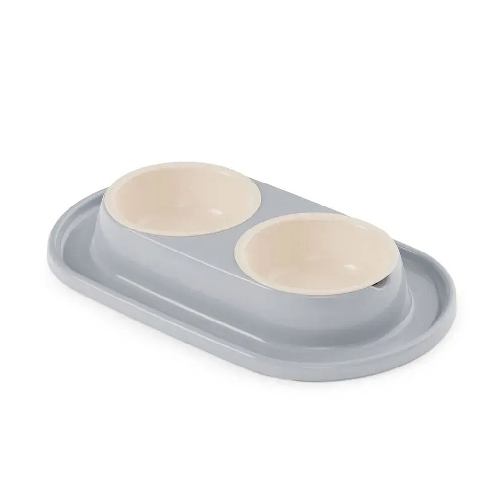 Миска двойная для животных на подставке, 0.3 л, серый цвет, устойчивая конструкция