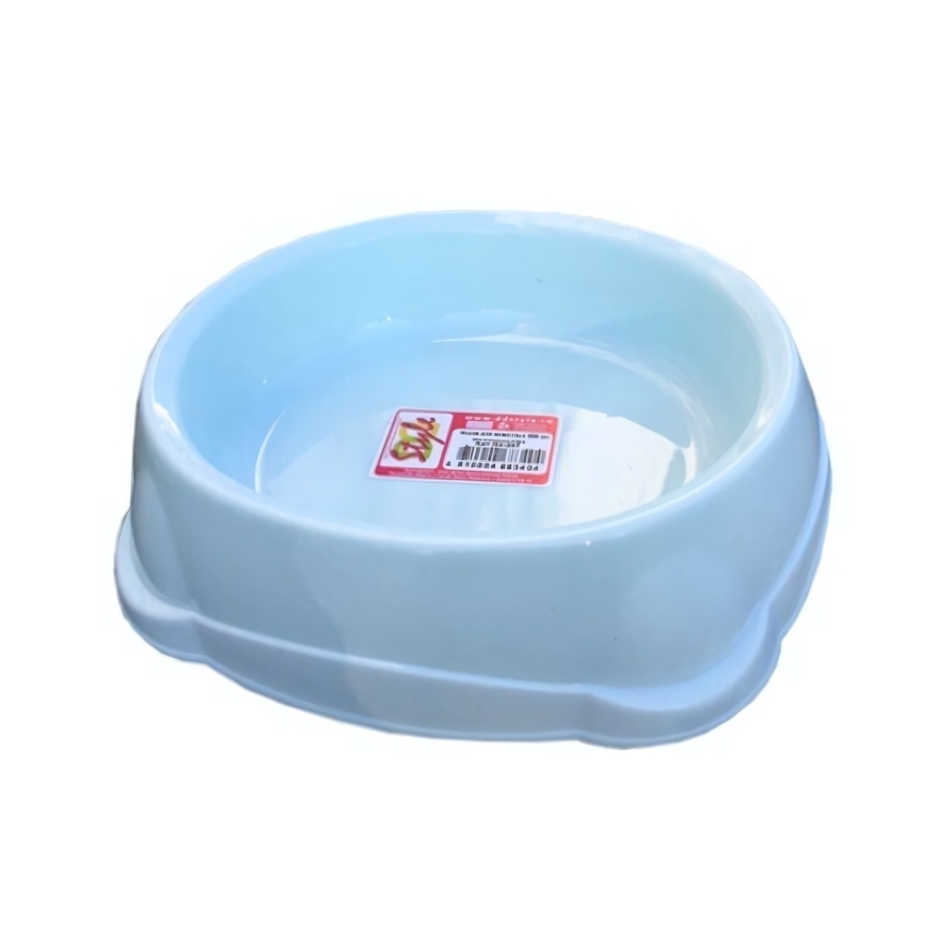 Миска изготовлена из прочного, легкого пластика и обладает объемом 500мл, что делает её универсальной для ежедневного использования. Благодаря округлой форме и гладкой поверхности, её легко мыть и supporting гигиену питомца.