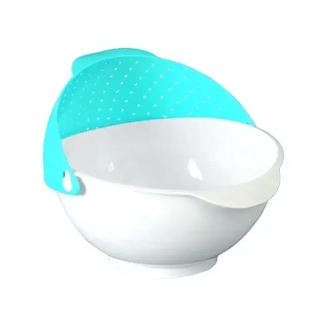 Пластиковая миска-дуршлаг сочетает функциональность и эргономичный дизайн. Идеальный выбор для быстрого промывания круп, ягод, зелени и других продуктов благодаря перфорированным стенкам.