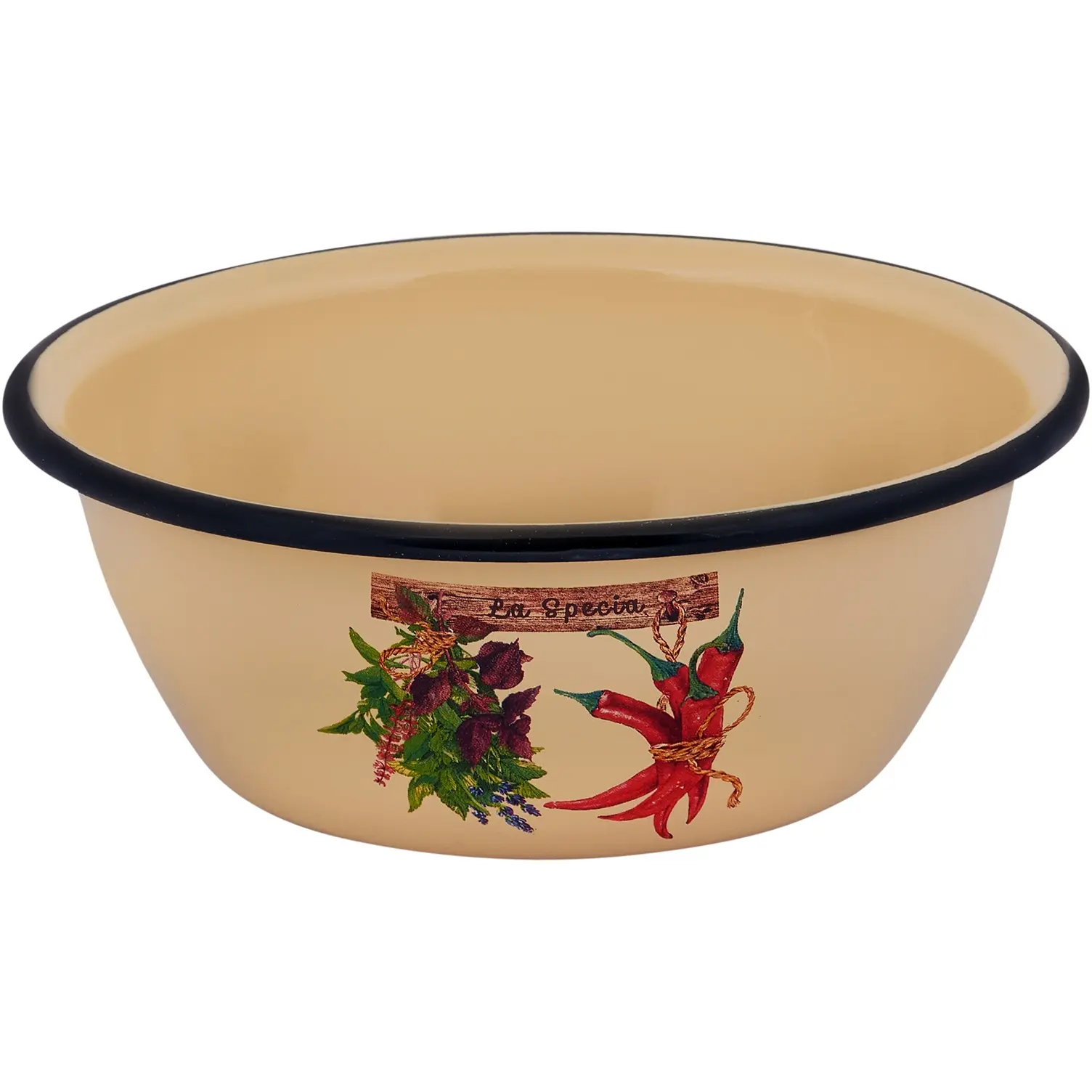 Миска эмалированная 1,5л 'La Specio', бежевая с черной окантовкой, сталь