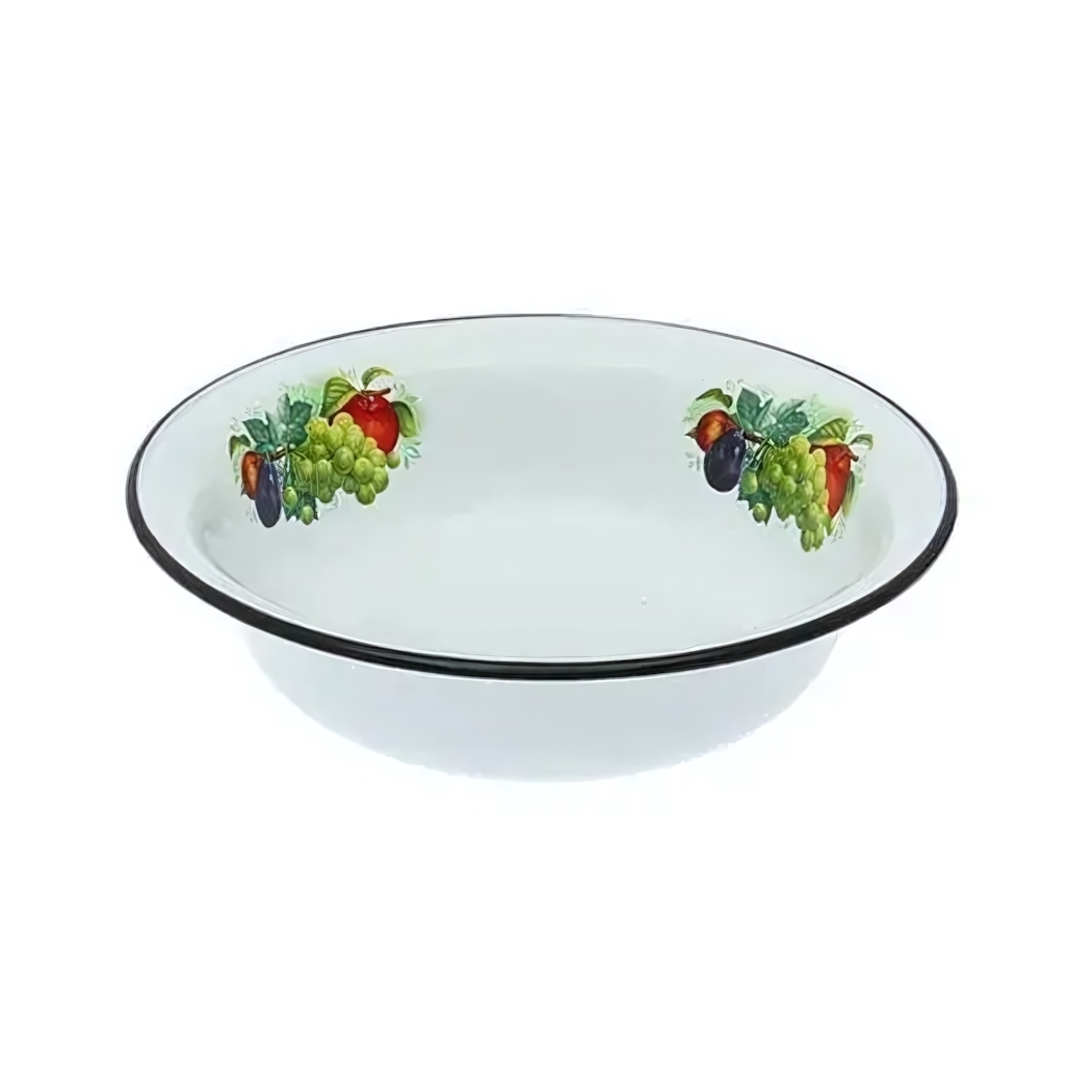 Миска эмалированная 2л с фруктовым рисунком, белая с чёрной окантовкой, модель "72-626"