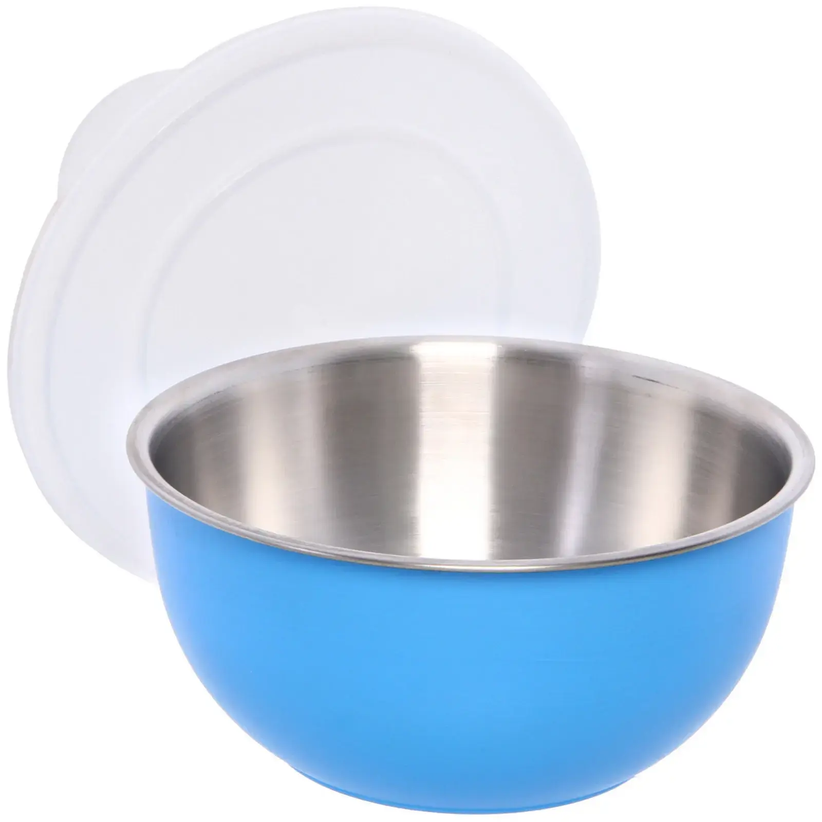 Миска имеет голубой цвет с гладкой внешней поверхностью и зеркальной внутренней, что придает ей стильный вид. Крышка белого цвета, плоская и удобная в использовании. Размеры миски делают ее универсальной для различных кулинарных задач. Не упустите возможность сделать вашу кухню более функциональной и стильной с этой миской!